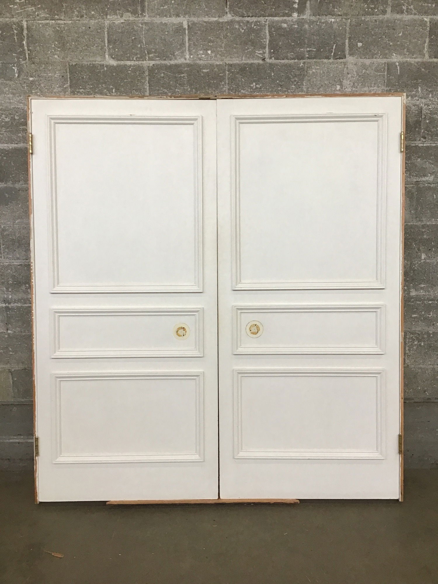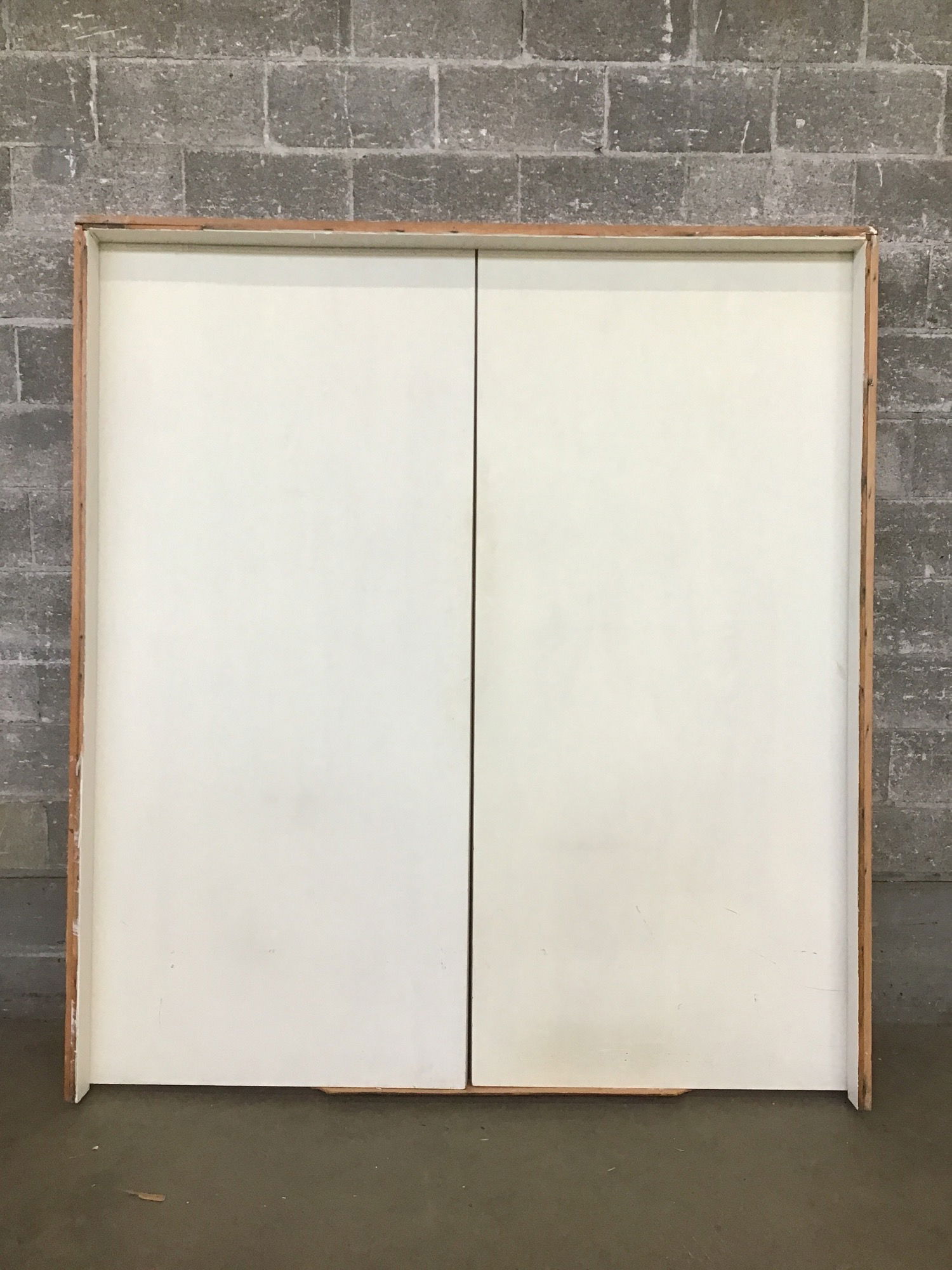 72" Hollow Interior Double Door that has trim installed superficially to form faux panels. Previously had two dummy knobs attached.