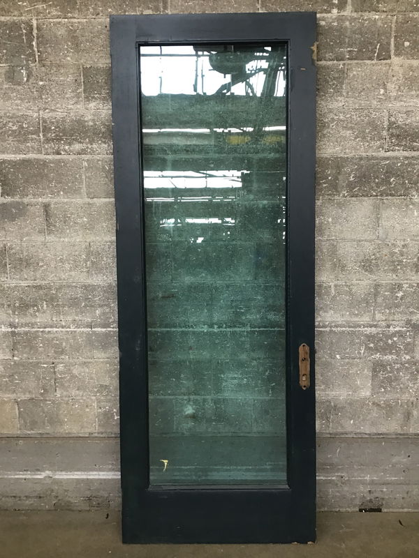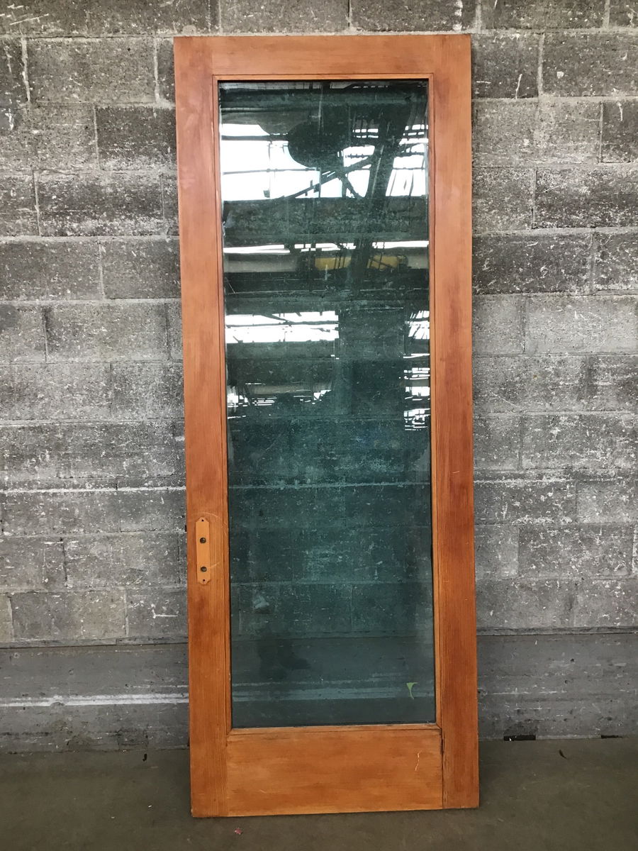 A long tall n handsome door ready to take ya'll to the prom in back! Are you feeling it now Mr. Krabs?? This solid wooden door features a full lite of thermopane and tempered transparent glass and what looks to be a pine wood construction. This was most likely used in a commercial setting but could also be used in a home with tall ceilings.