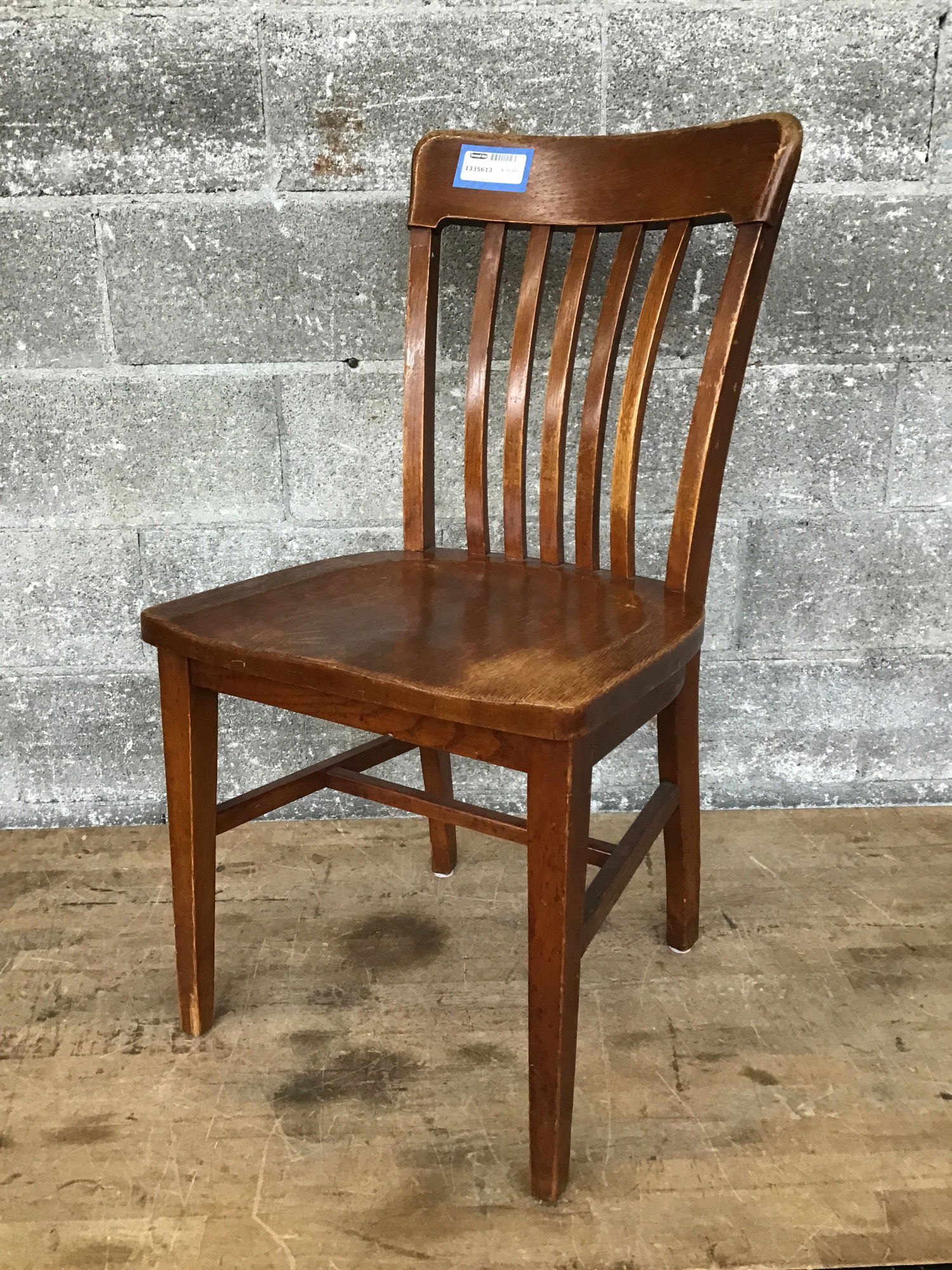 Vintage wooden banker-style chair in good condition. Has the classic squared spindles on the back and a nice comfy seat.