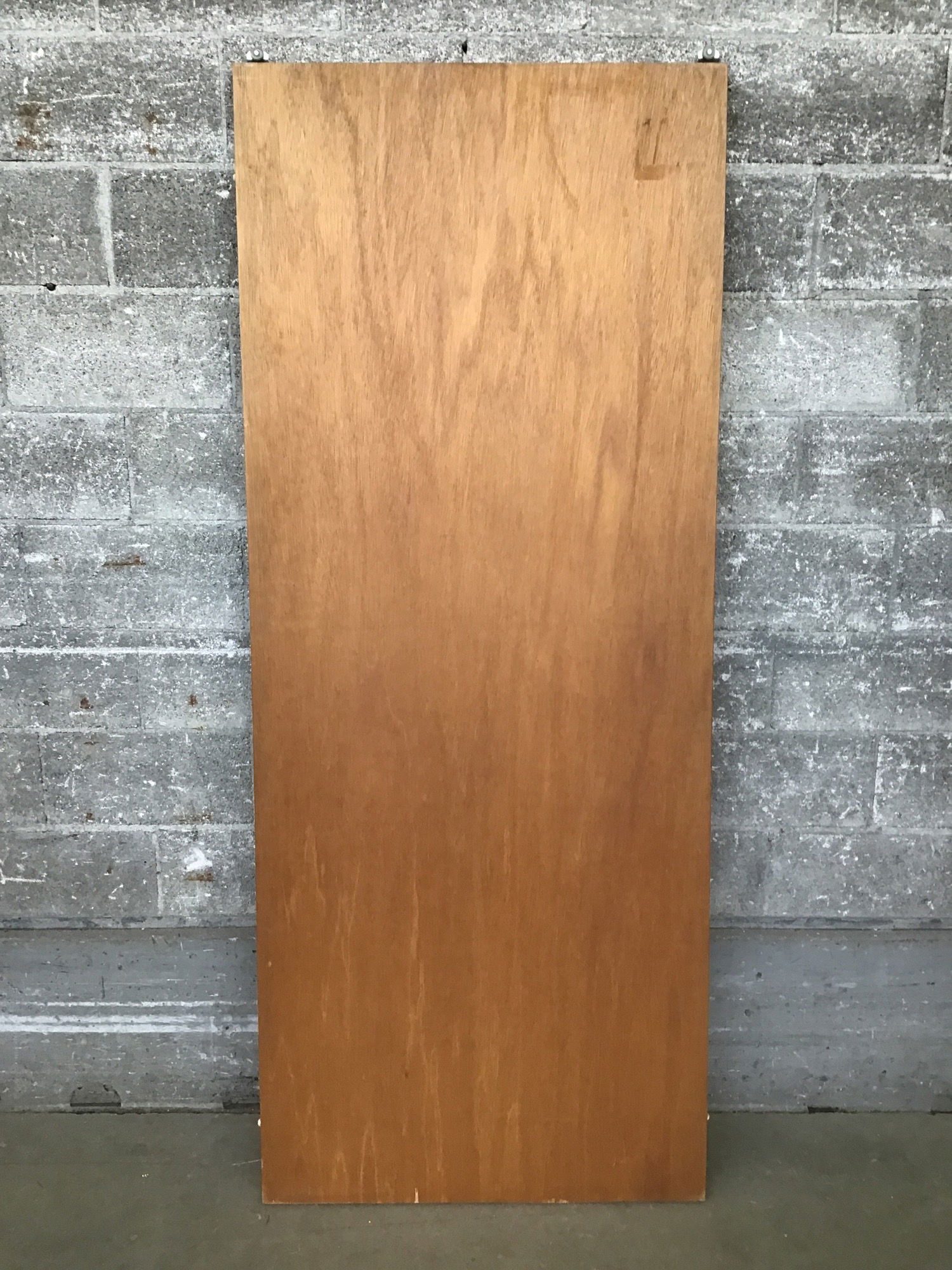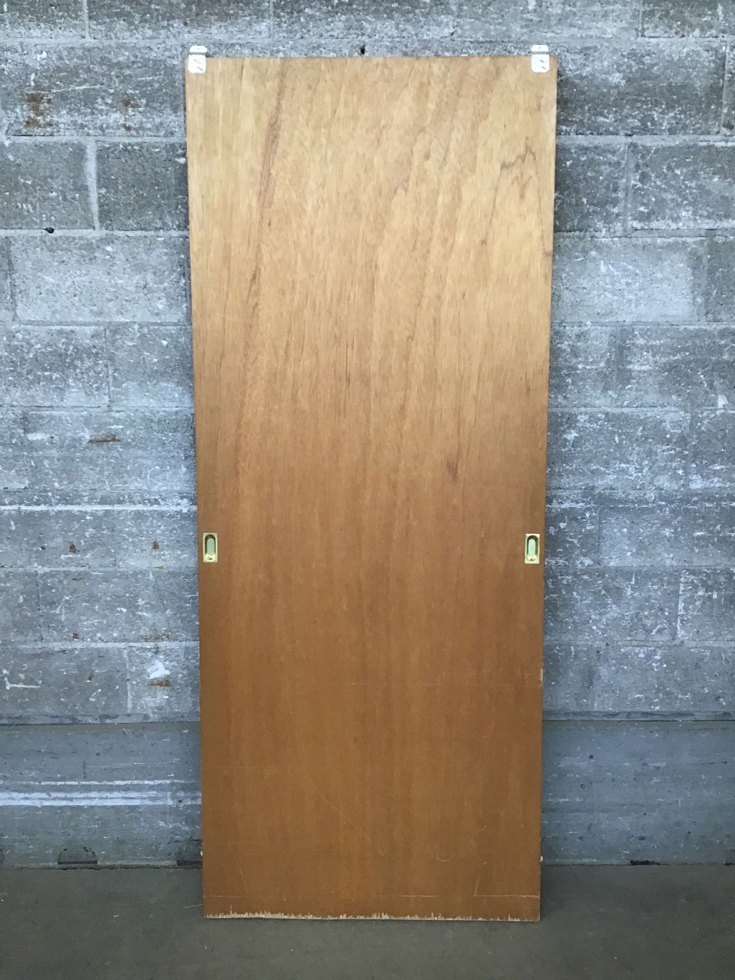 Lauan bypass door with a light stain finish, in good used condition. Has a great midcentury look.