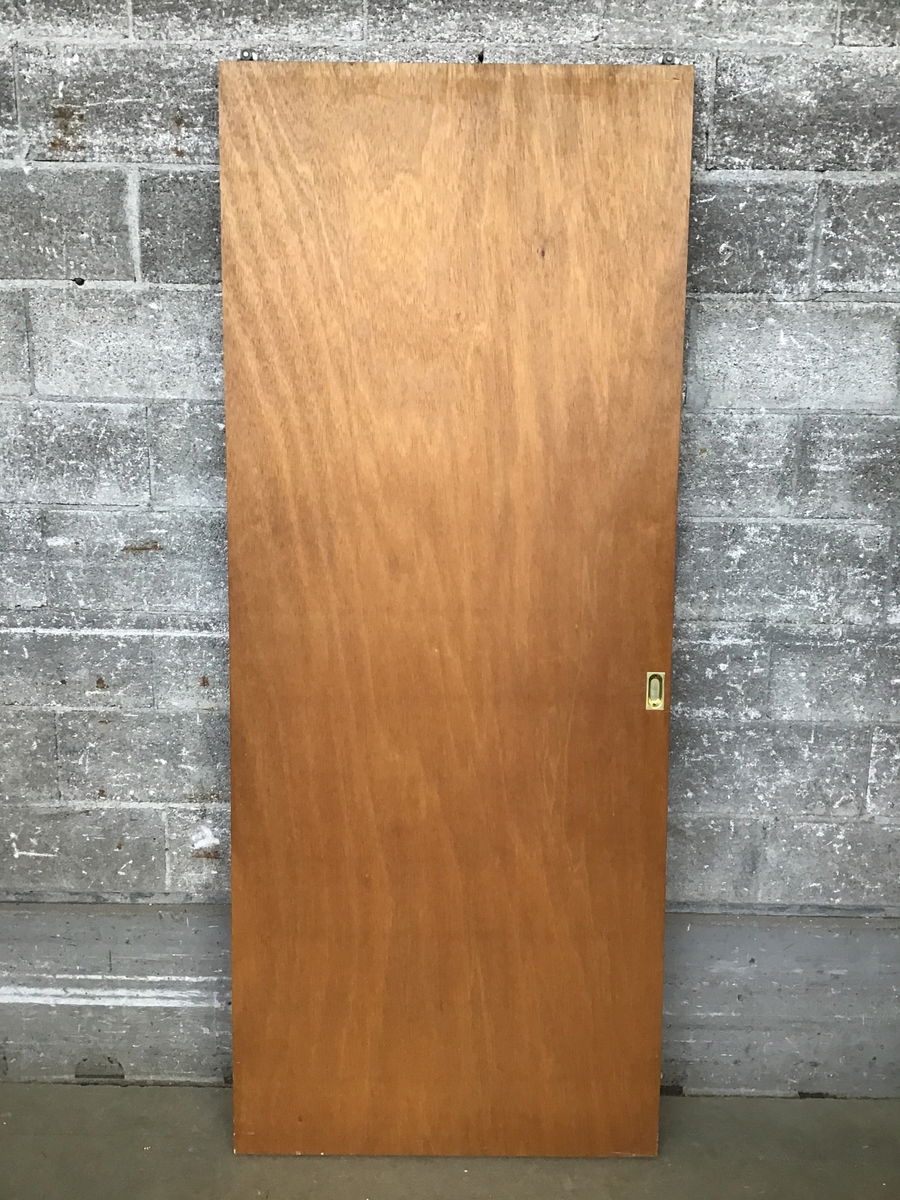Lauan bypass door with a light stain finish, in good used condition. Has a great midcentury look.