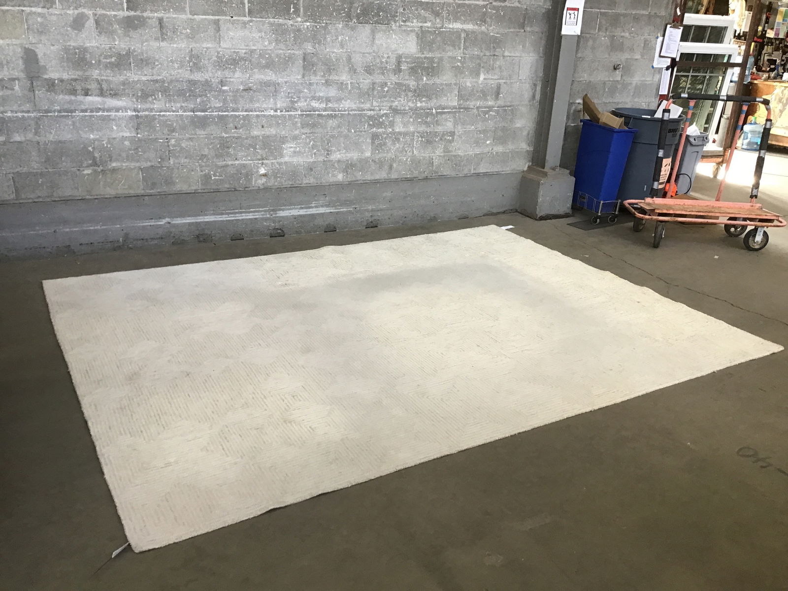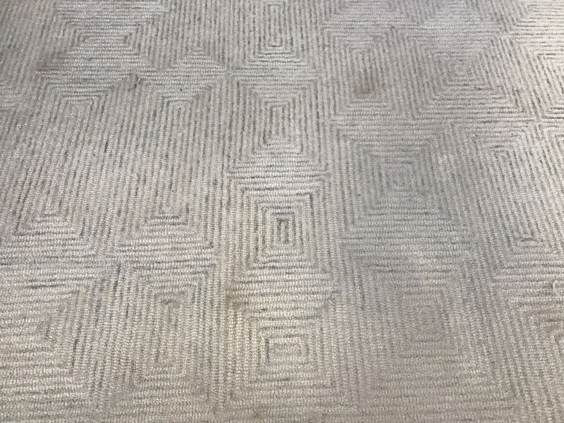 Crate and Barrel 'Presley' neutral heathered rug in decent shape, comprised of 50/50 wool and cotton, has a thick warm feel and yet lends a brightening affect with its light color.