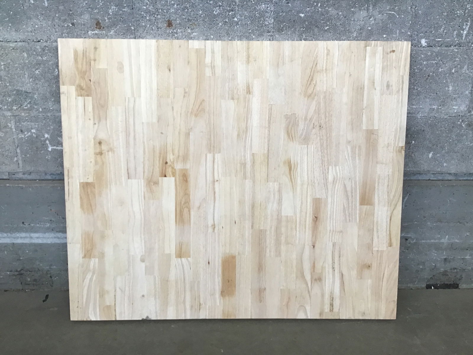 An untreated butcher block slab. This would make for a good table top surface for those feeling project inclined. There is some staining on the surface which could be sanded off; the price reflects.