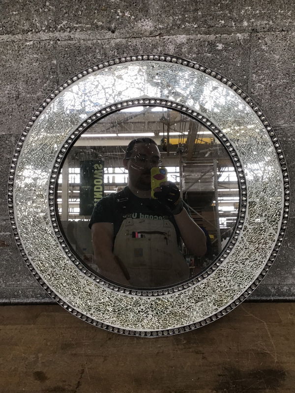 Round mirror absolutely bedazzled within an inch of its life, it just shimmers! See yourself here.