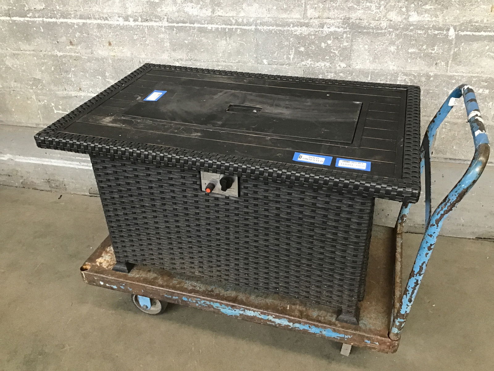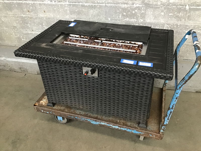 Is a firepit table the classiest way to get toasty on your patio? We think so! Get cozy with this 44in freestanding flamin' table! For propane fuel with a woven decorative body and aluminum top. The fire insert is filled with shimmery glass beads to make your fire extra pretty. A very similar model retails on Ambozambo for $319.