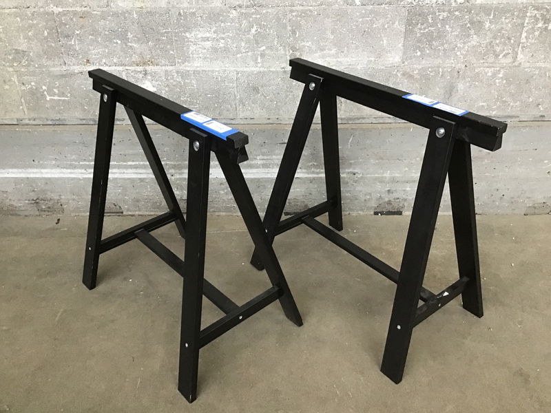A pair of sawhorse or trestle style table bases from Ikea. Pop your tabletop of choice on 'em for a quick and easy DIY!