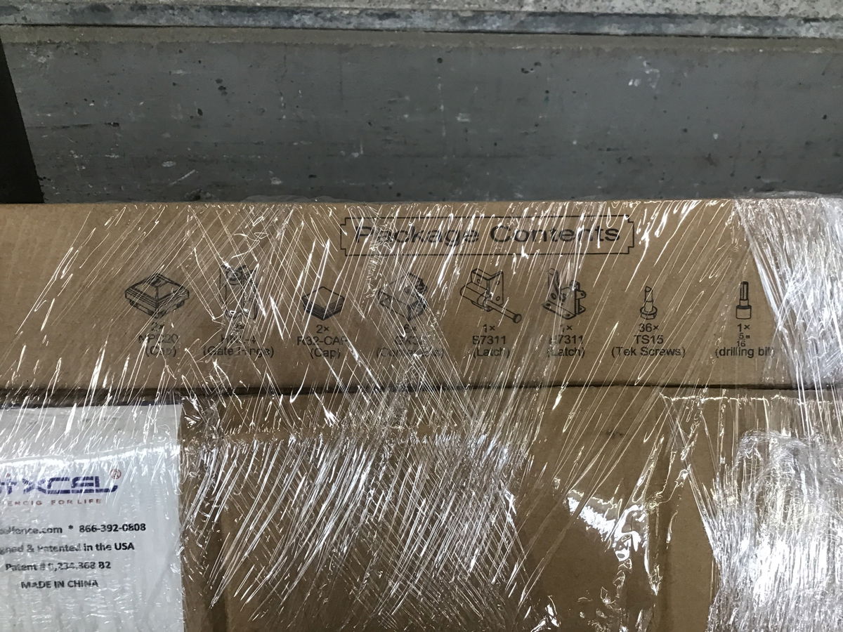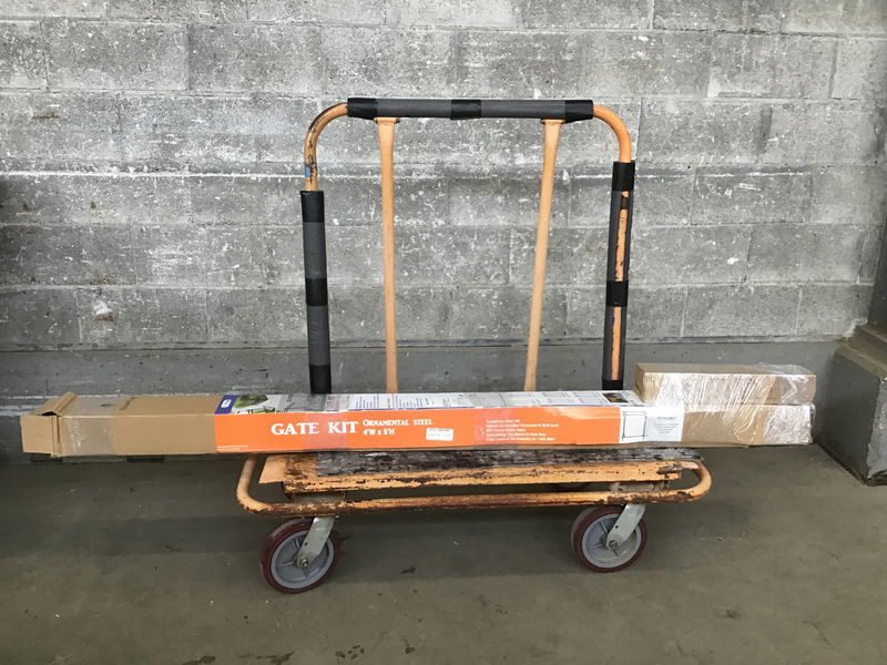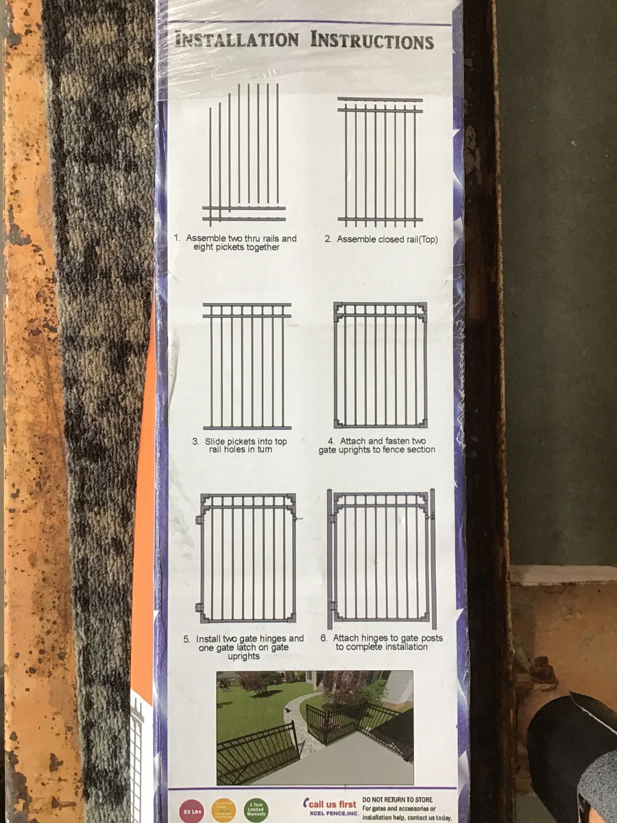 XCEL 4 foot by 5 foot steel gate kit, with poles for installation in soil/concrete. I looked through the opened box, looks like all the parts are there. Similar models retail for around $250.