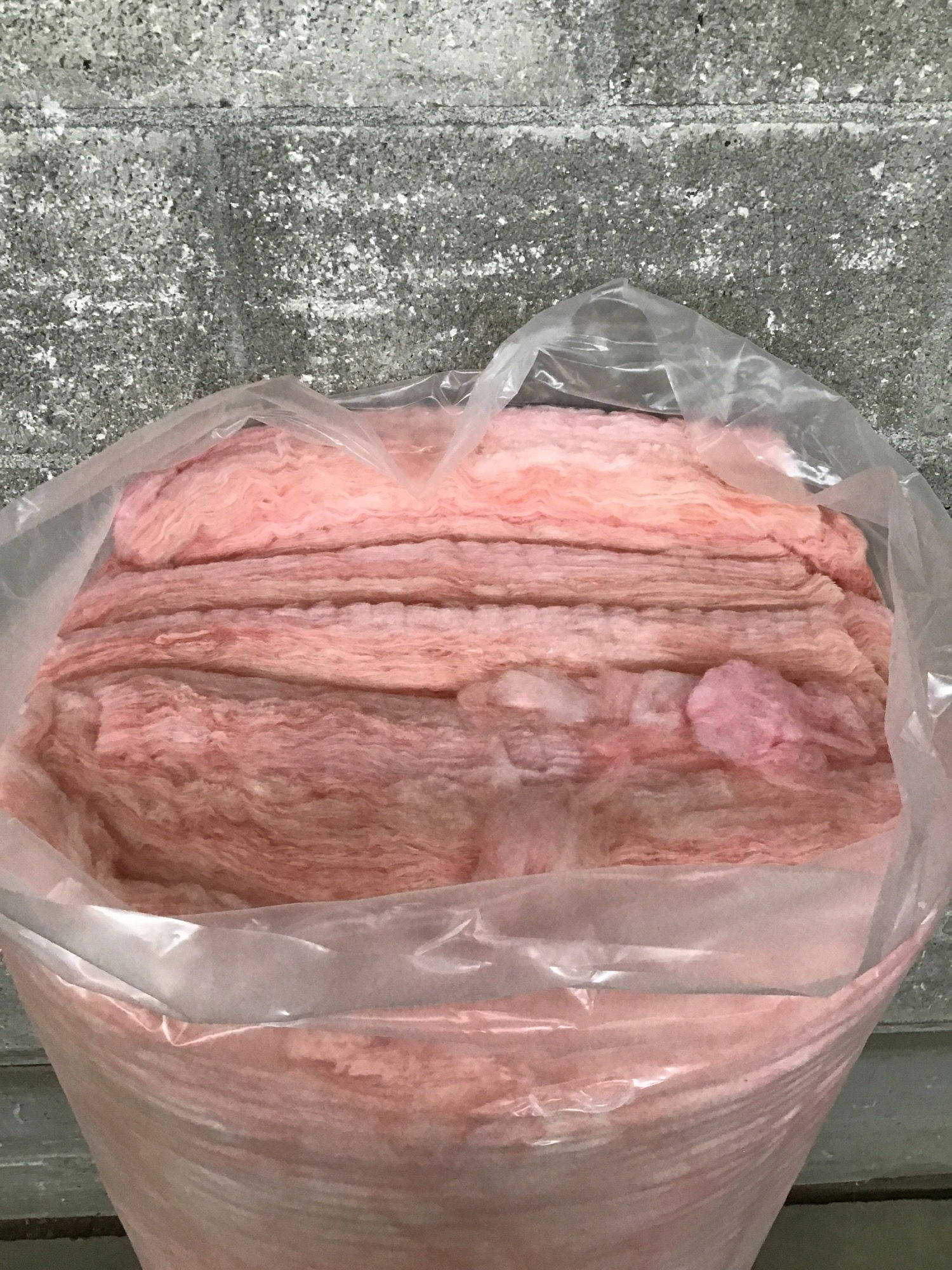 New unlabeled bag of unfaced insulation, likely R38. ~40 SF of coverage, 8 pieces in the bag.