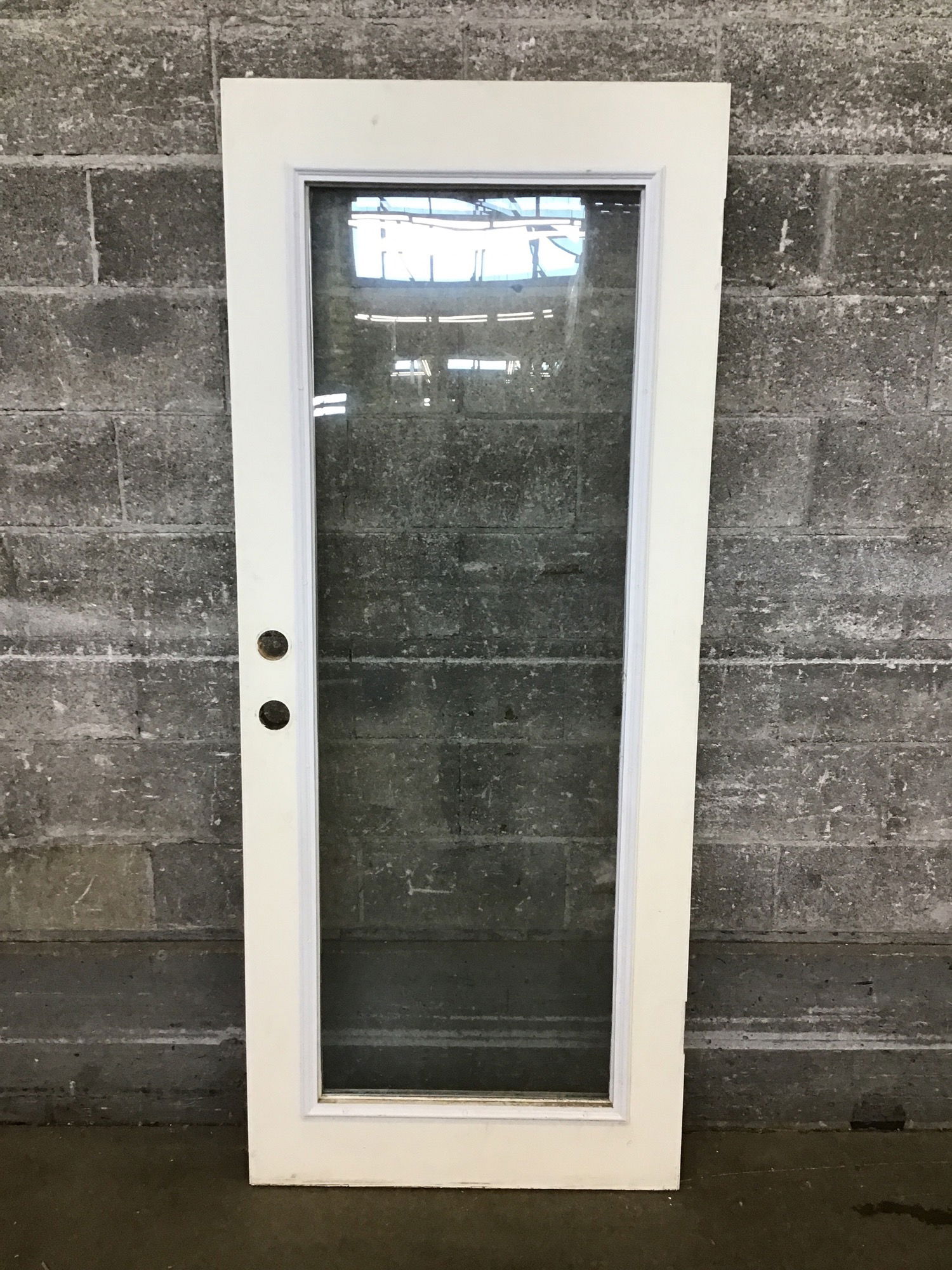 Good looking exterior full lite door, seems to be in pretty good shape. Hinge cuts are the full width of the door, so you could install for either right or left hand swing.