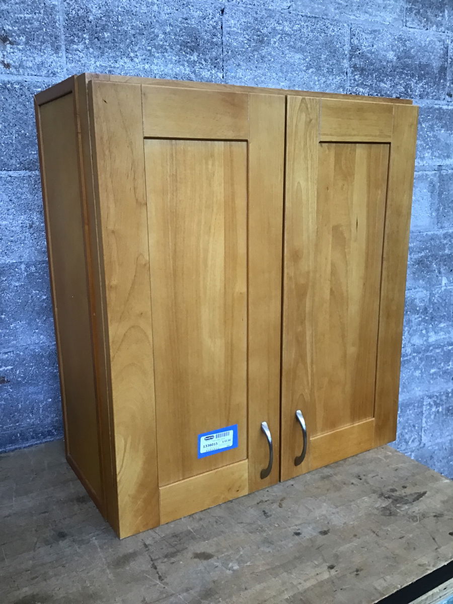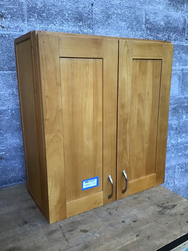 Cherry Upper Cabinet with plywood box and nickel pulls.