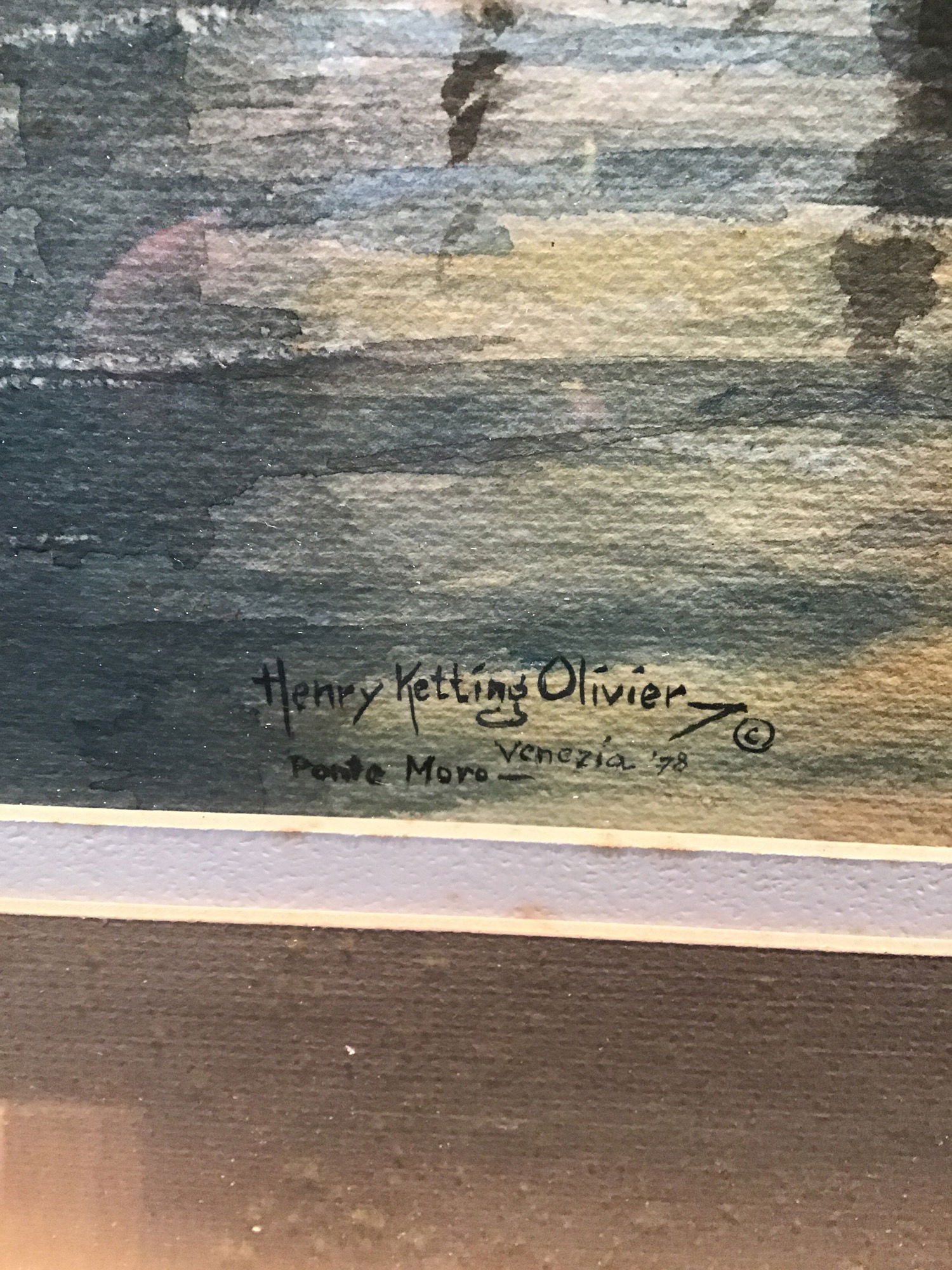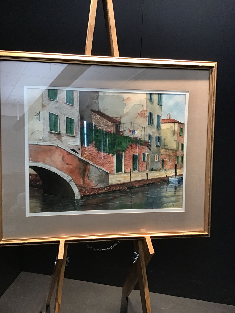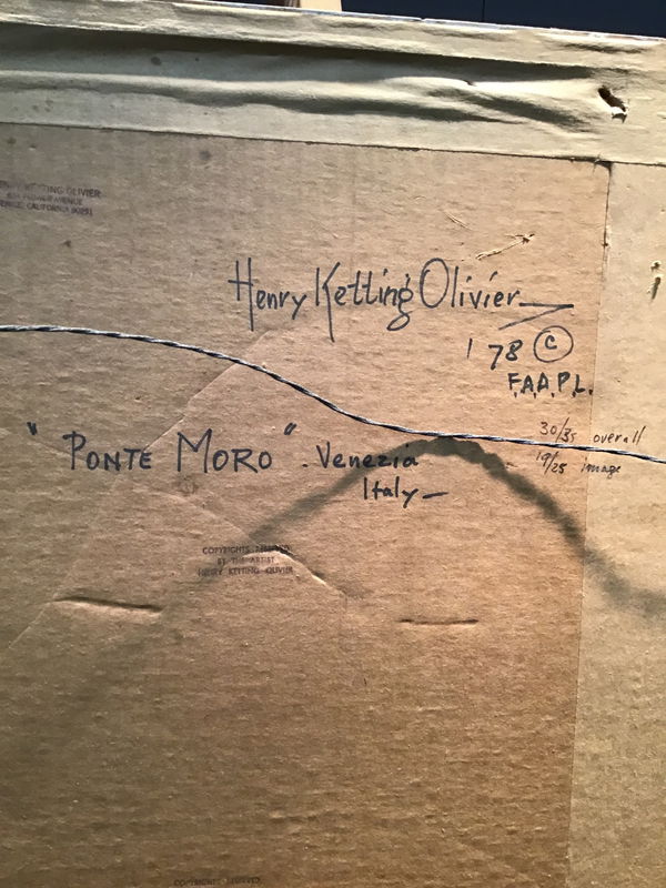 Henry Ketting Olivier was an artist known for his landscapes with ties around the world, he was born in Indonesia, studied in the Netherlands and the United States. He was a renowned art teacher for years after emigrating to the US after WWII. This is an original piece titled "Ponte Moro" which depicts the Ponte Moro bridge in Venice, wonderfully framed in glass with a gold plaster frame. Signature on bottom right corner