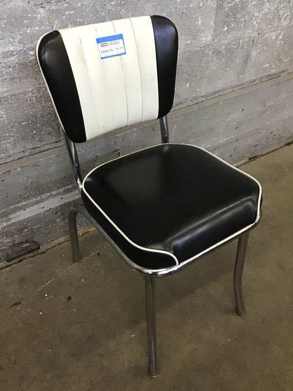 Really cool looking vintage chair with black and white leather upholstery and a chrome base.