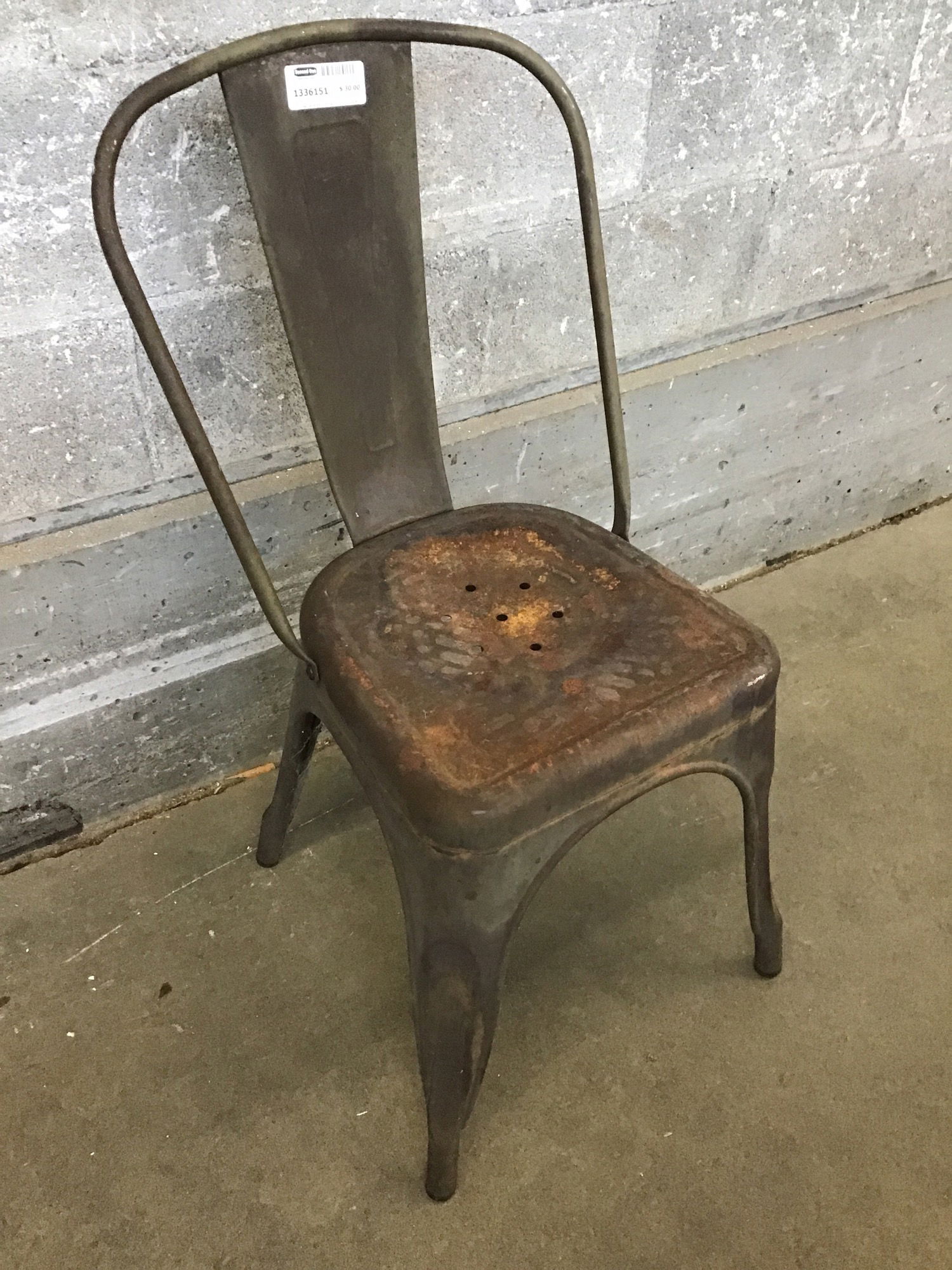 If you have ever sat outside at a bar or chose to eat outside at a restaurant, you have sat in this chair. This one sat outside in the rain for a bit.