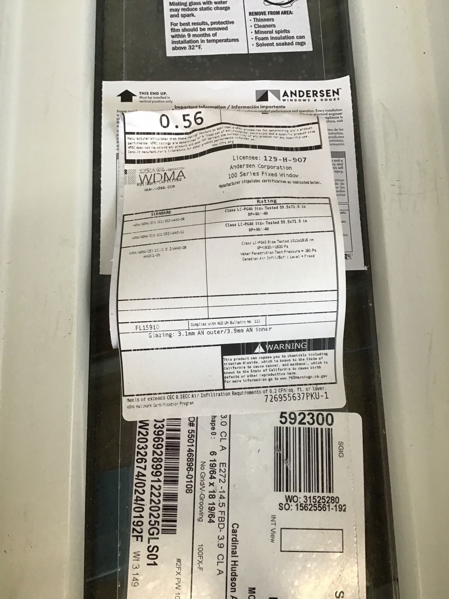 Andersen Vinyl Fixed Window like new, never installed.