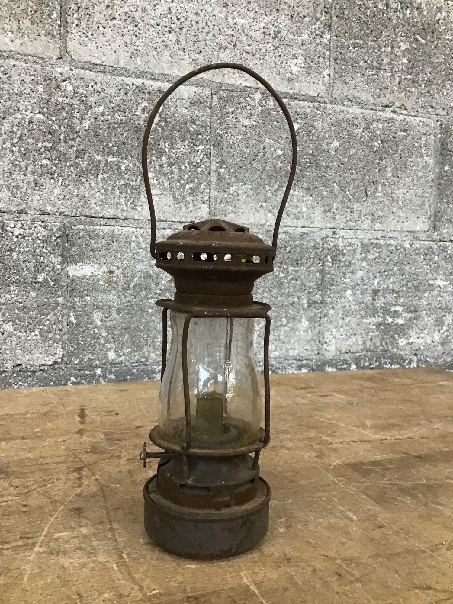 An antique kerosene lantern manufactured by the Dietz company, likely some time in the early 20th Century. Looks to be in pretty good shape with a rustic charm to it.