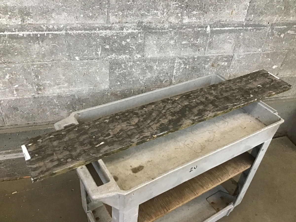 This is a skinny slab of black marble that has some fluting going on. Would be good for an accent piece to something.