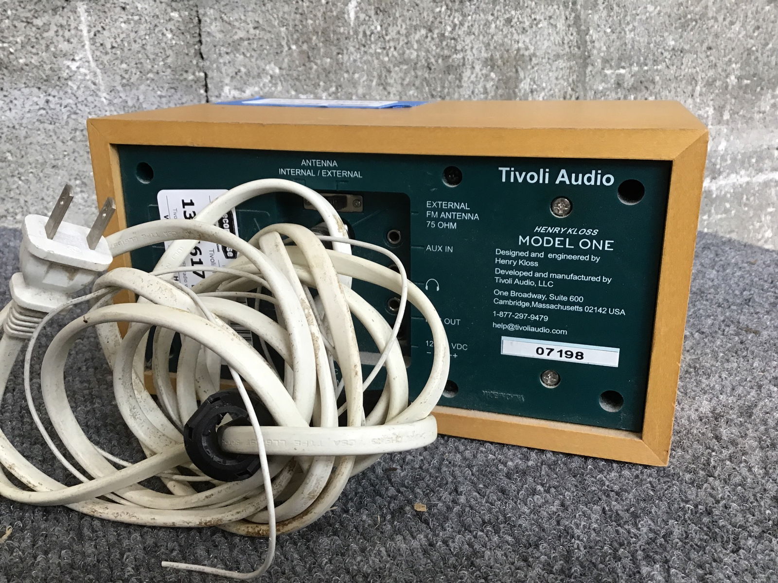 Tivoli 'Model One' AM/FM radio with antenna and Aux-In, worked great when tested and keeps a low, yet stylish profile. These radios are still available starting at $150 on the Tivoli website.
