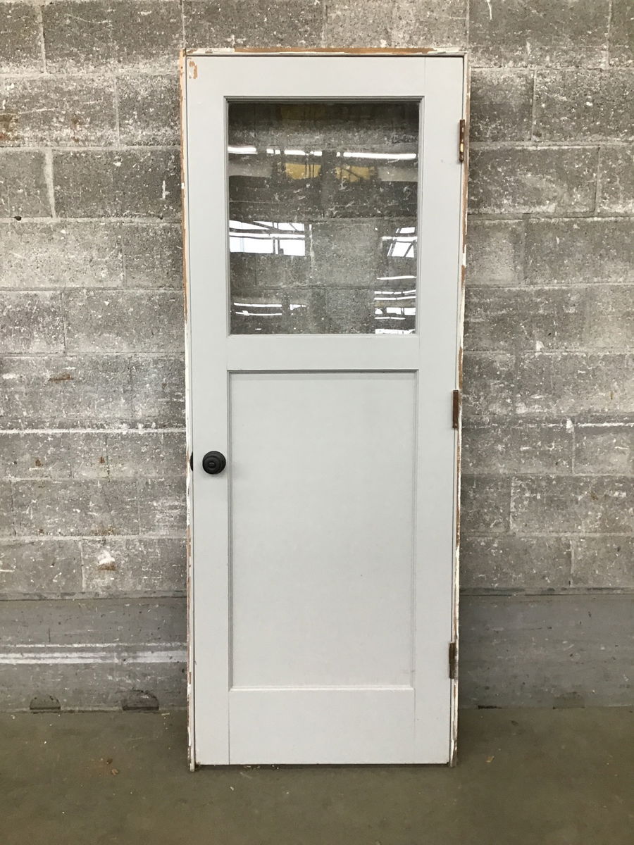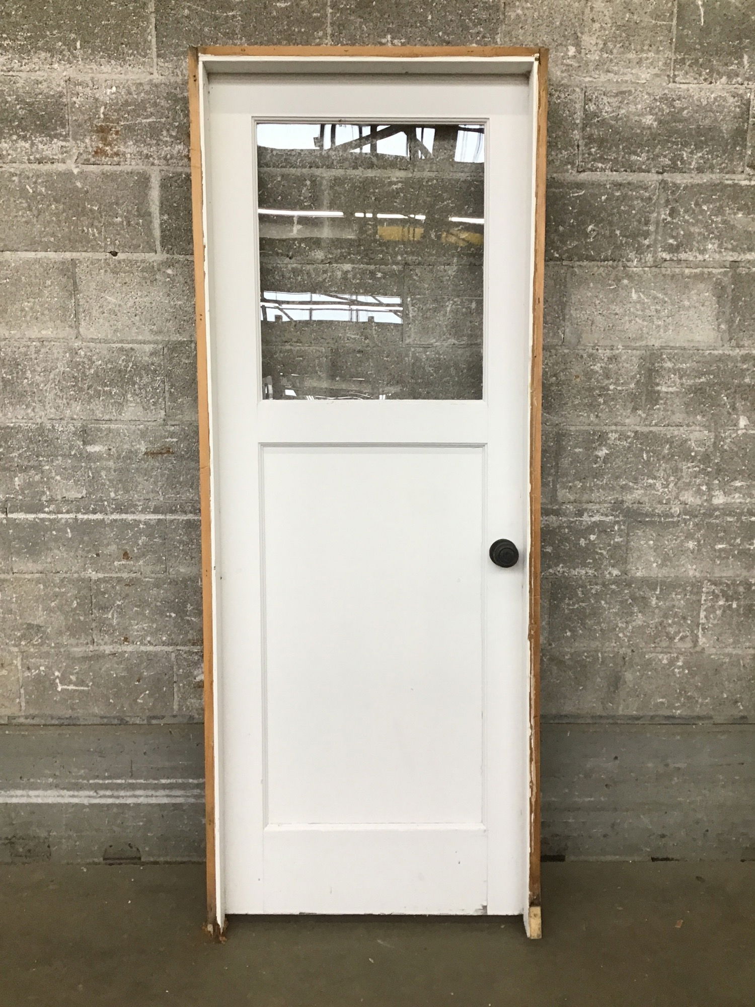Half lite exterior door in-jamb, painted white on exterior and grey on interior. Would be a good option for a garage-to-house door.