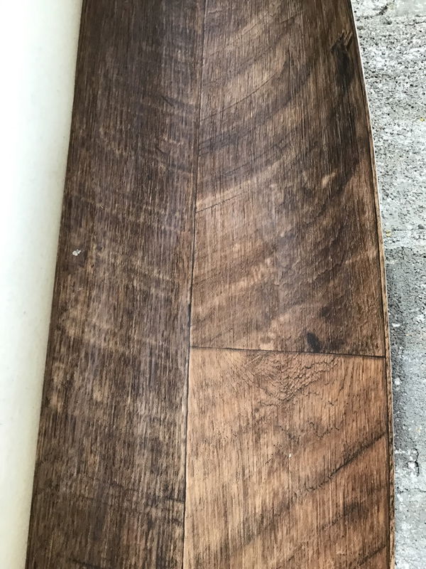 Unsure of how much is left but there is enough for a small project. Has a faux rustic roughsawn fir pattern.