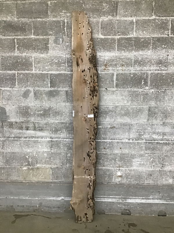 Locally milled & kiln dried. The majority are Fir/Hemlock, sometimes Spruce goes in the mix. These have amazing bore channels that come from the notorious teredo clam. These saltwater clams spend their entire lifespan in these logs creating their tunnels that rarely intersect. The raw stock logs (before milling) originally used as boom surrounds in antiquated timber transport. These logs used to be left to rot in coastal towns before our supplier took it upon himself to repurpose them. Very unique stock, teeming in NW history.