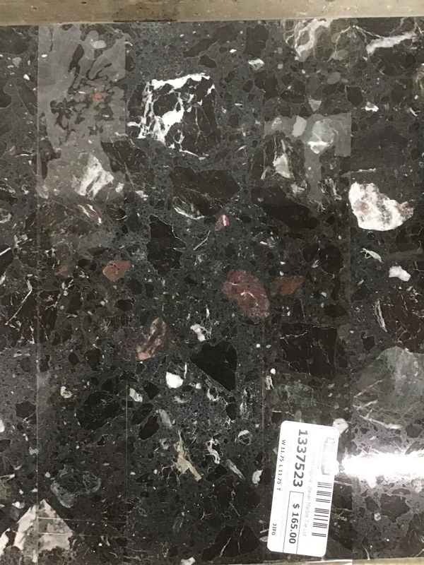 6 boxes of Italian natural marble tiles from Santa Margherita in "Verde Liguria" - a dark gray matrix with gorgeous mossy greens and oxblood red interspersed among black and white aggregate. Just enough color to play up a bold scheme, or be in harmony with a subtler statement room. Each box has 11 nominal 12x12 tiles, for a total lot coverage of approx. 44sqft.