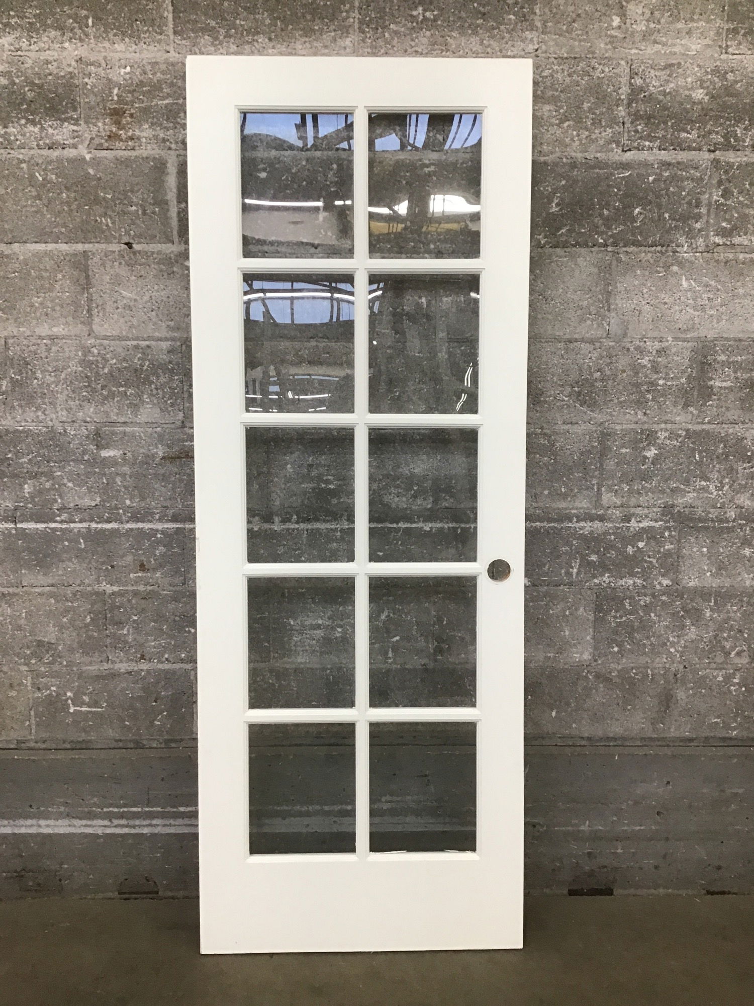 Single pane, ten lite interior door with tempered glass.