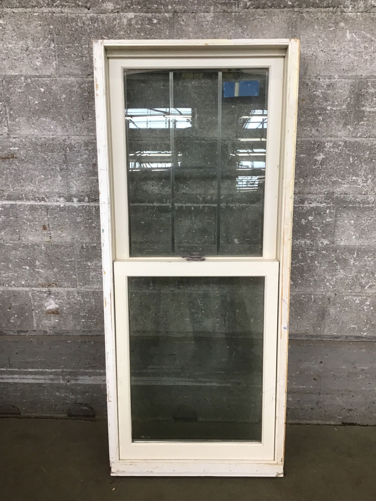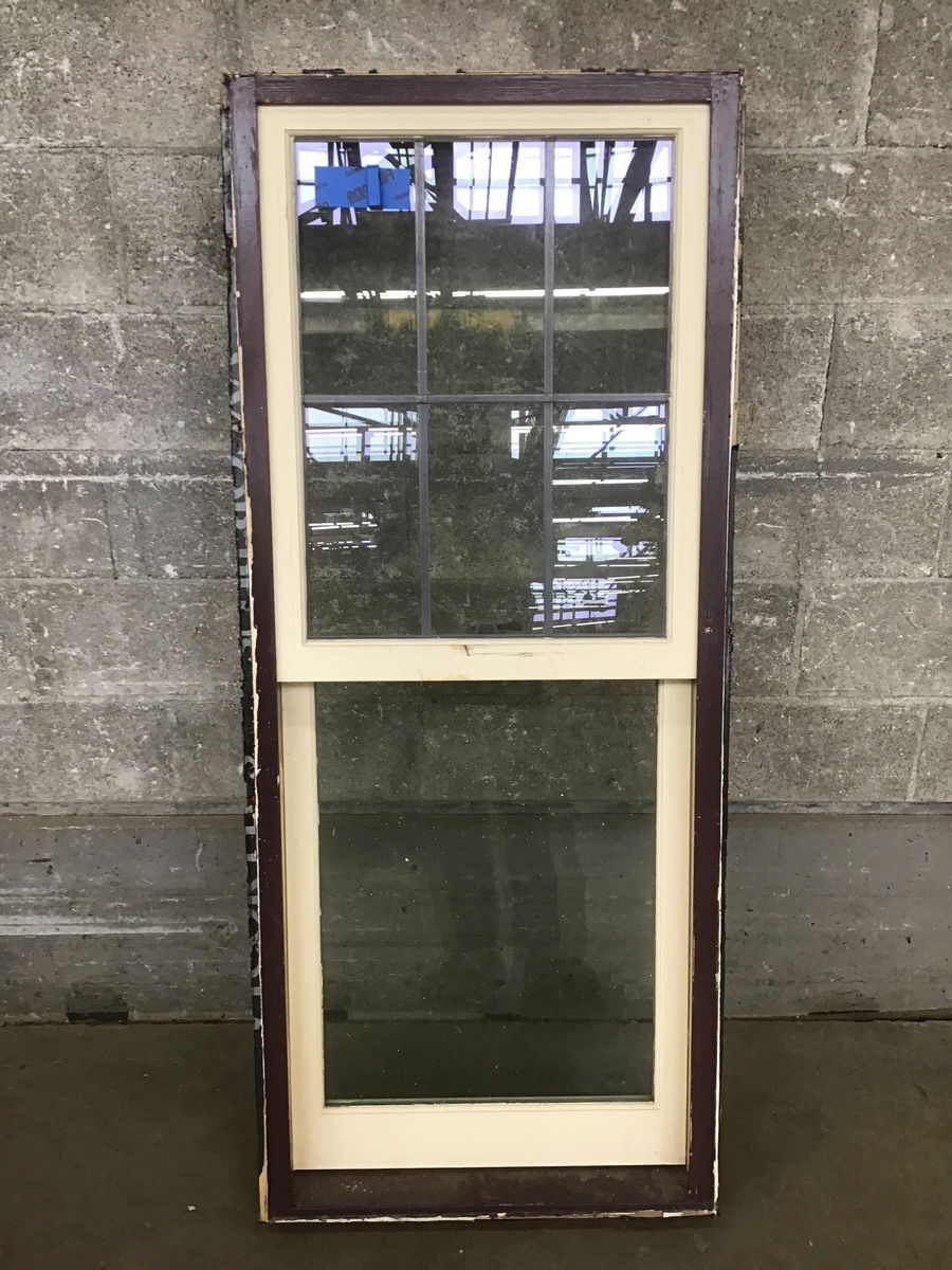 Ca. 2002 Marvin wood double hung window with insulated glass. Looks to be in good, used condition. Has faux leaded grid pattern on top sash.