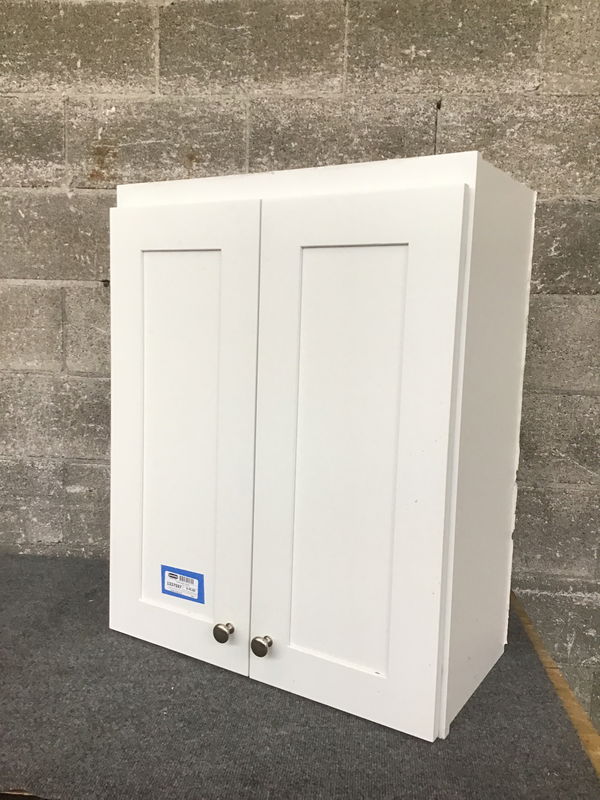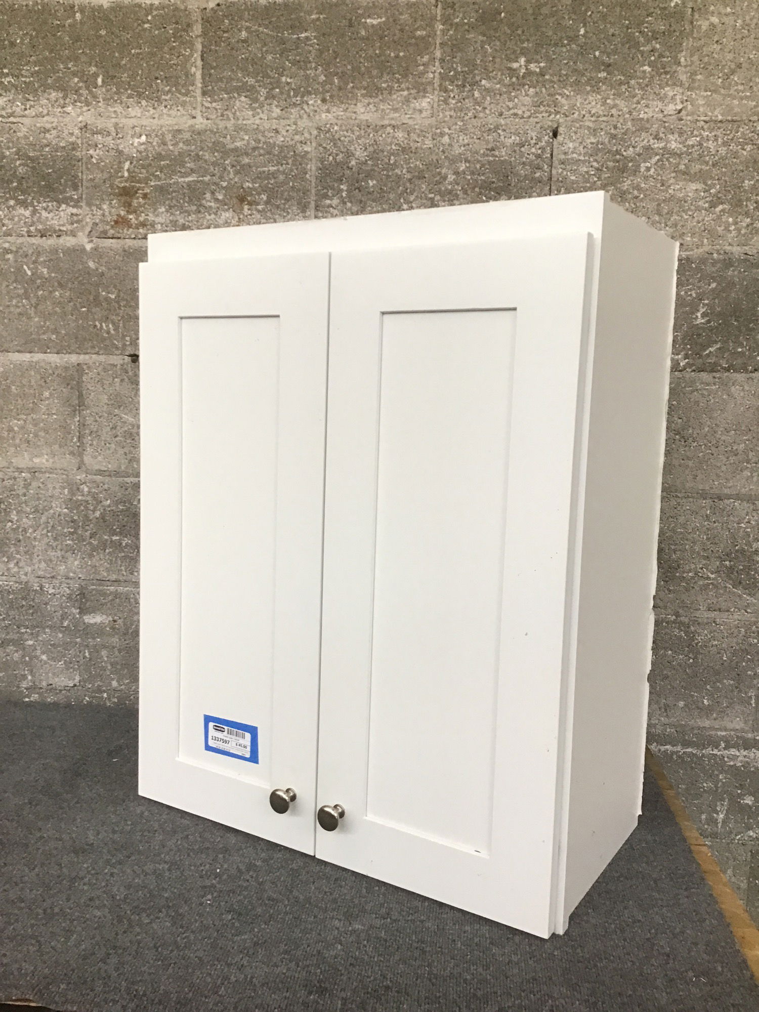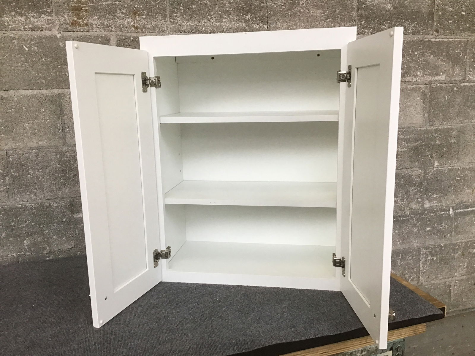 Shaker Upper Cabinet with two doors, brushed nickel hardware, and adjustable shelves.