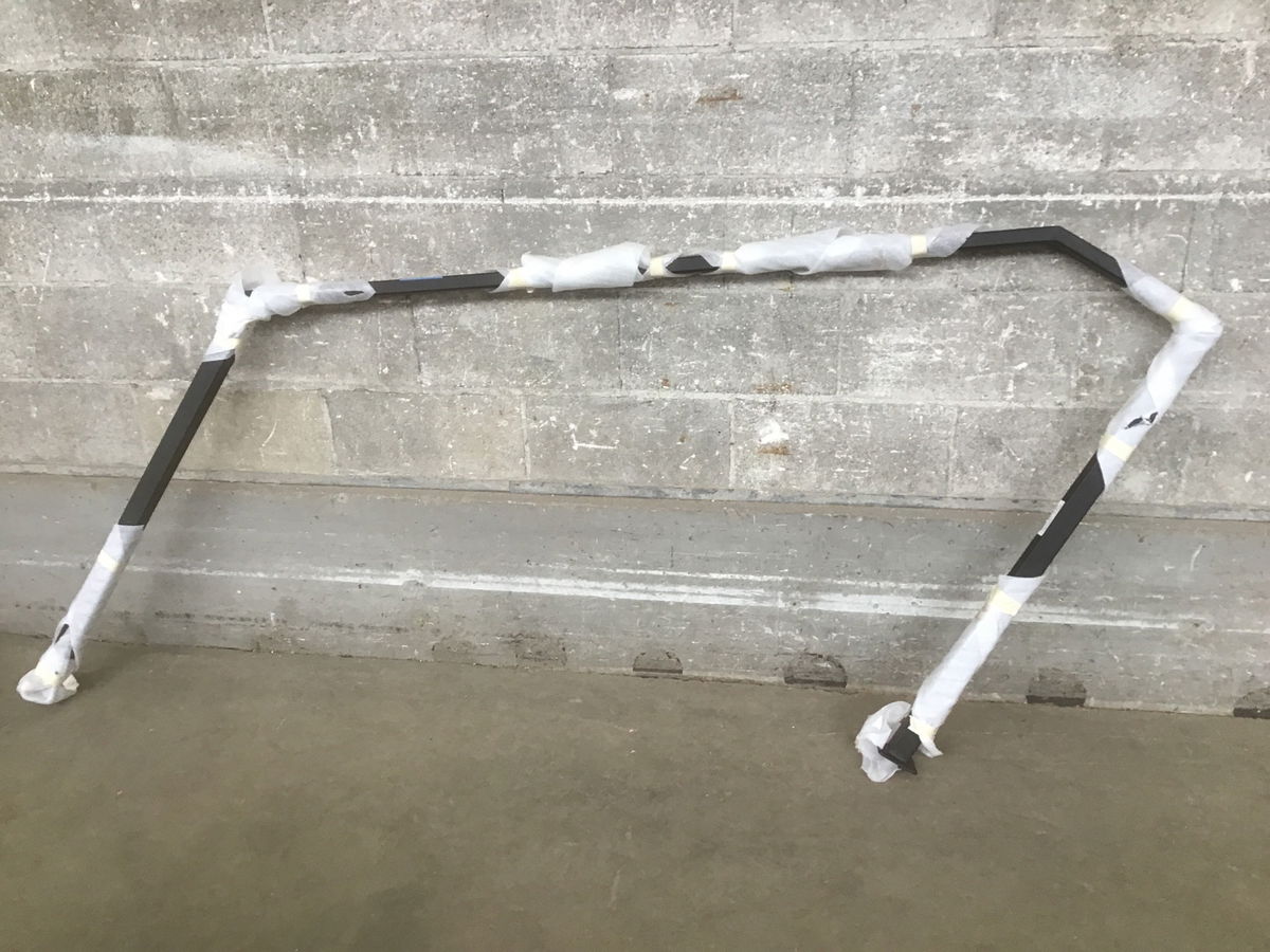 Steel stair railing that's still in its wrapping from it paint or powder coating job. Length listed is outside of 3" square foot to opposite outside foot. Item may have cosmetic damage. Photo may be representational.