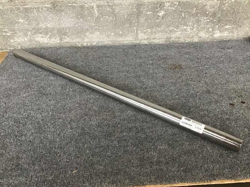 Chrome Single Cafe Table Leg. Has two small slotted spots for affixing to a table top. These legs can fit into the bulk table tops item #1338147 if you want standing height instead of sitting height.