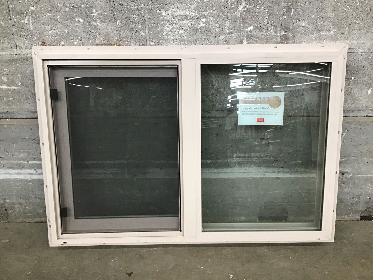 New, never installed Milgard vinyl slider with energy tags attached.