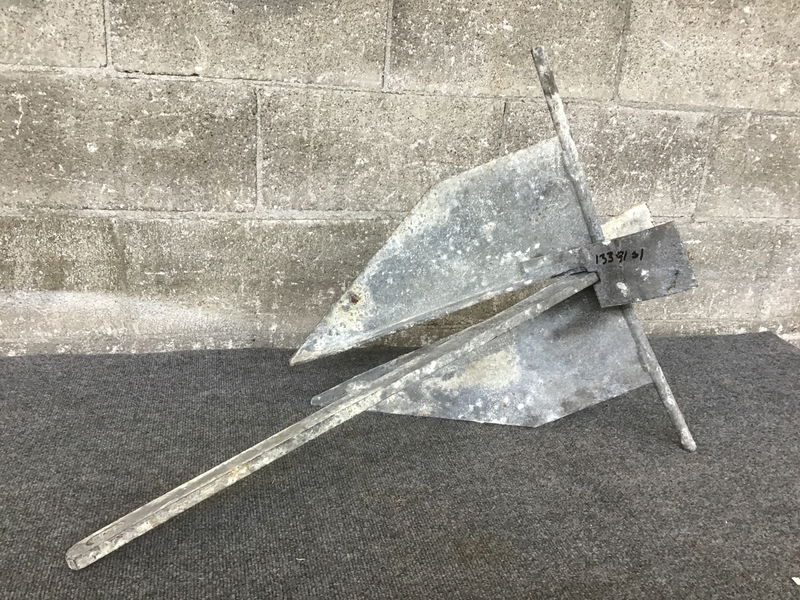 Your basic anchor, weighs around 20lbs and is 30in to the end of the shank. Has definitely seen some use, but seems plenty sturdy.