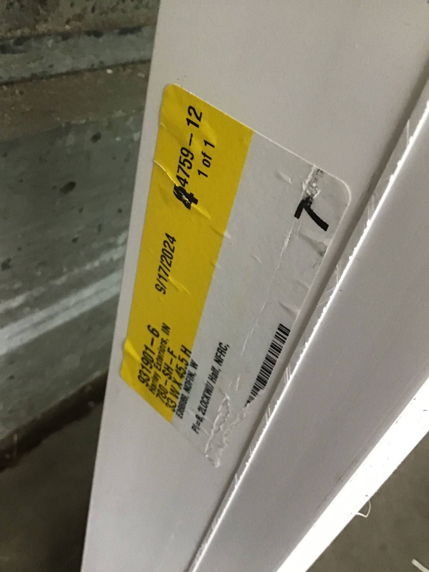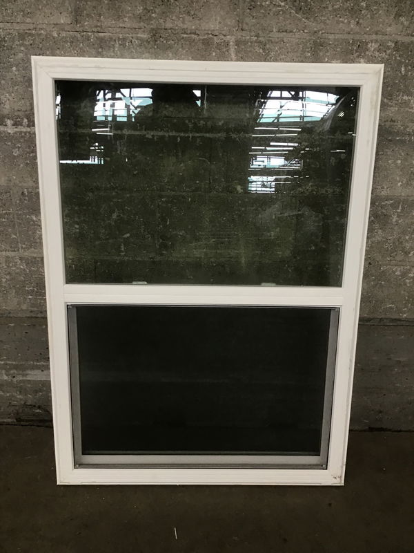 Ca. 2024 White vinyl single hung window that was briefly installed--contractor misorder. May or may not have an energy tag attached.