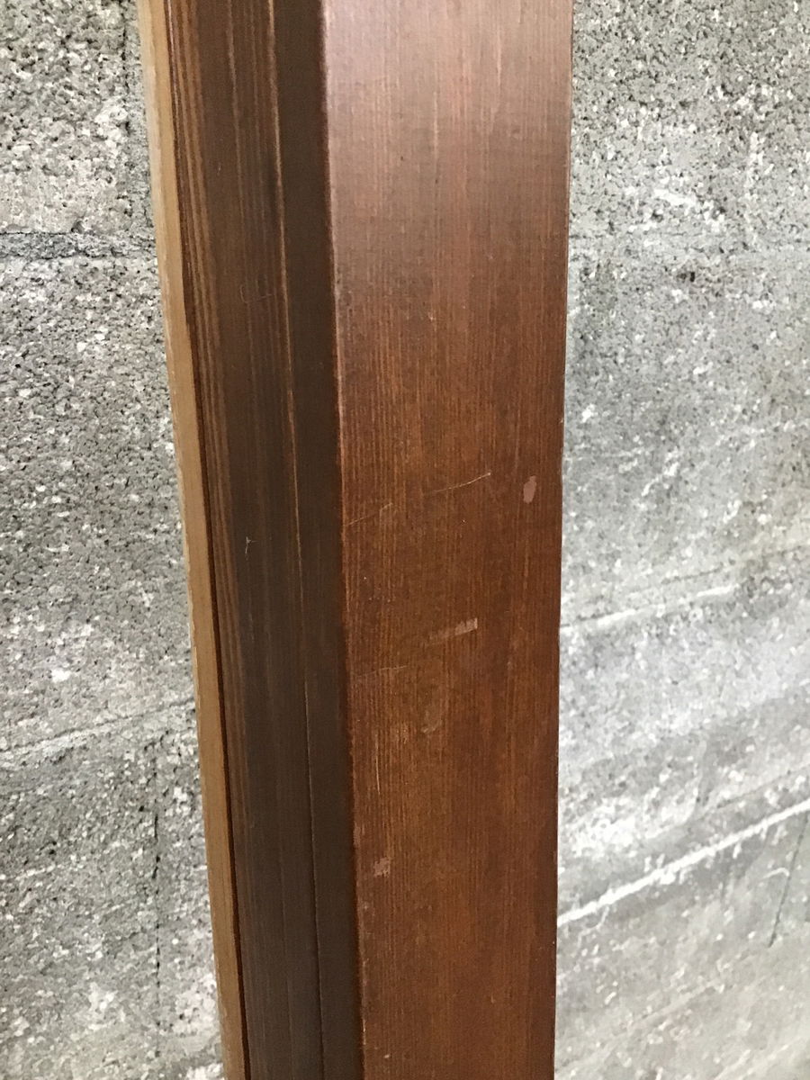 Five pieces of clear 1x3 fir (actual dimensions 11/16" x 2 7/16"), most of which is stained on three sides. Length listed is for the second shortest piece in the pack, which should mean you can case a door just a bit under that height. The shortest piece can be cut in two for the top. This material was reclaimed from a Craftsman style home.