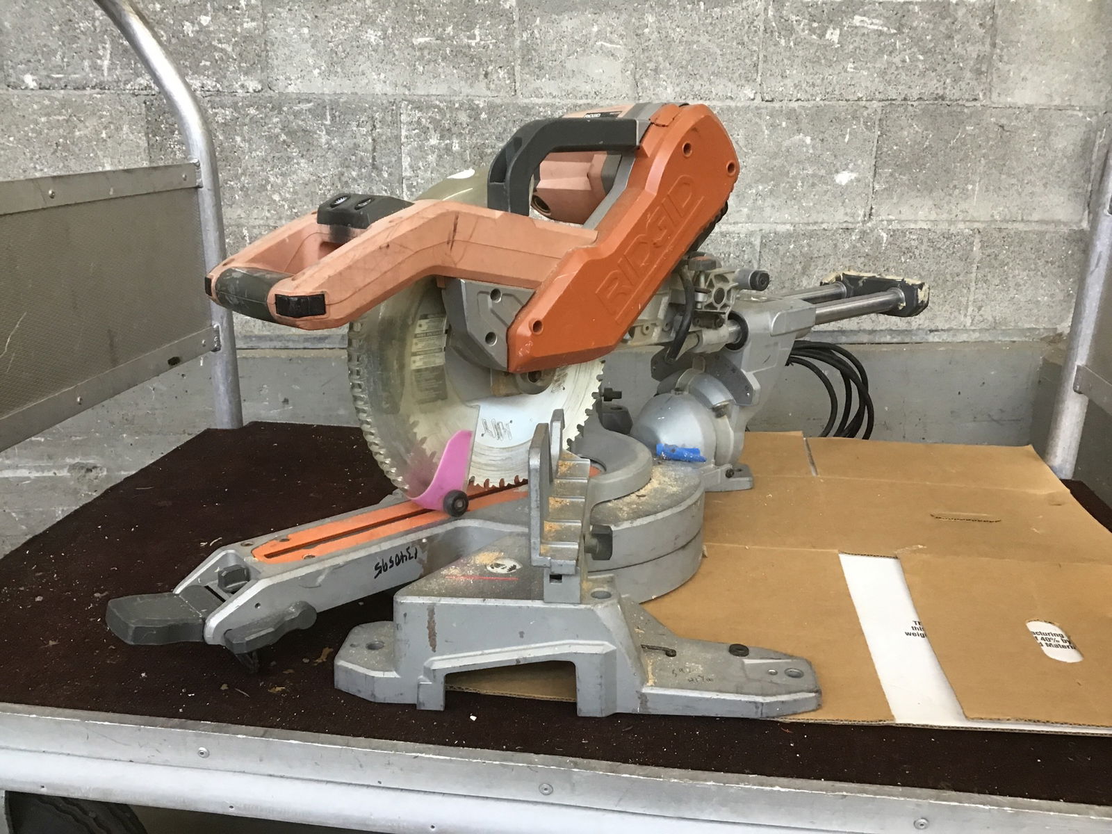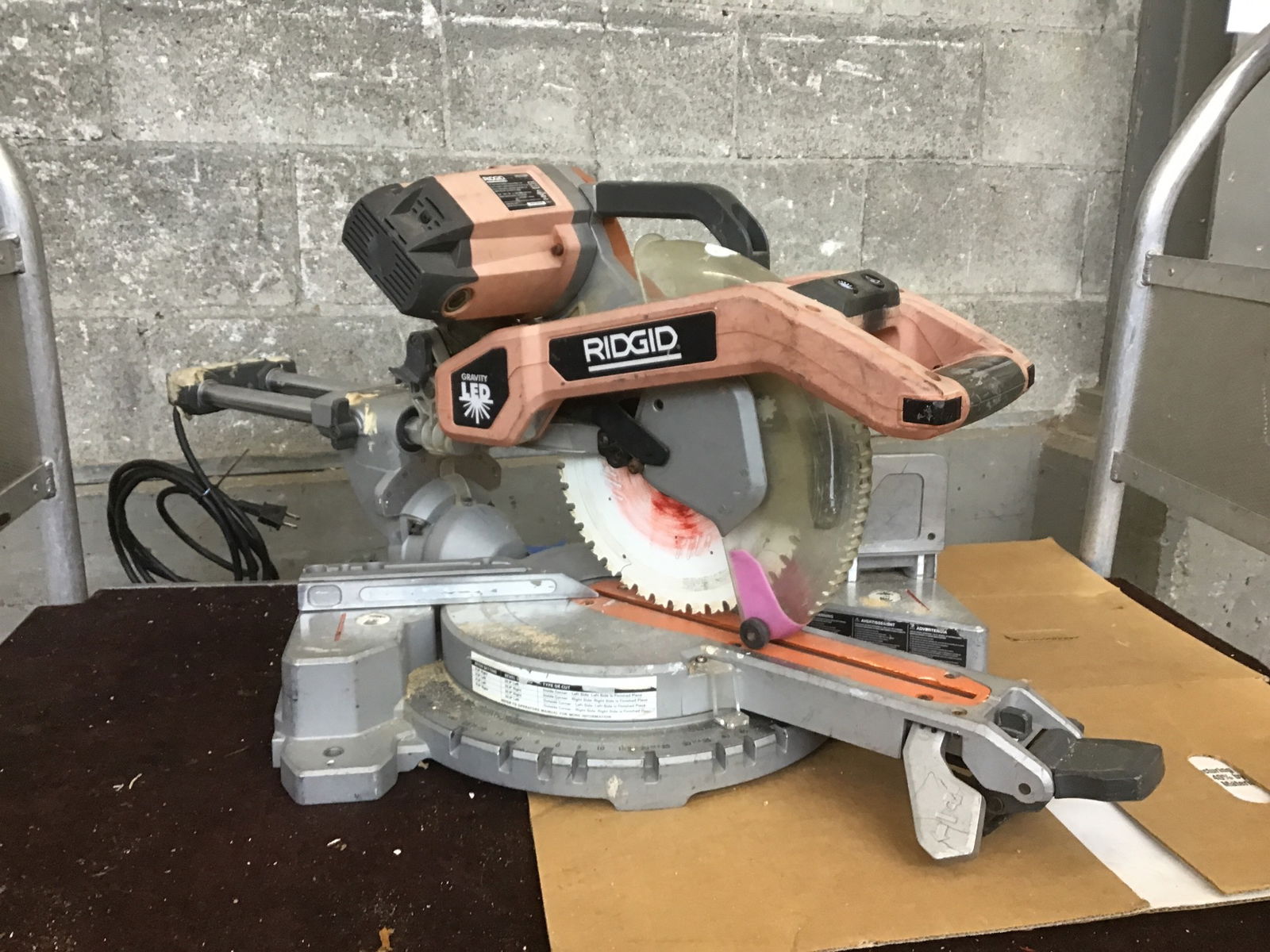 Used but still usable Ridgid 10" compound miter saw. This appeared to be running fine when briefly tested in house.