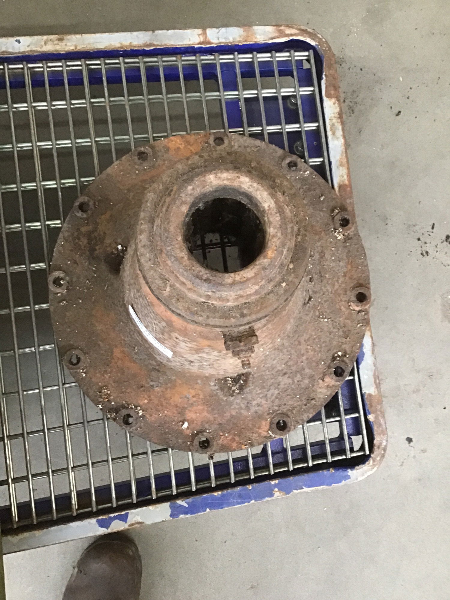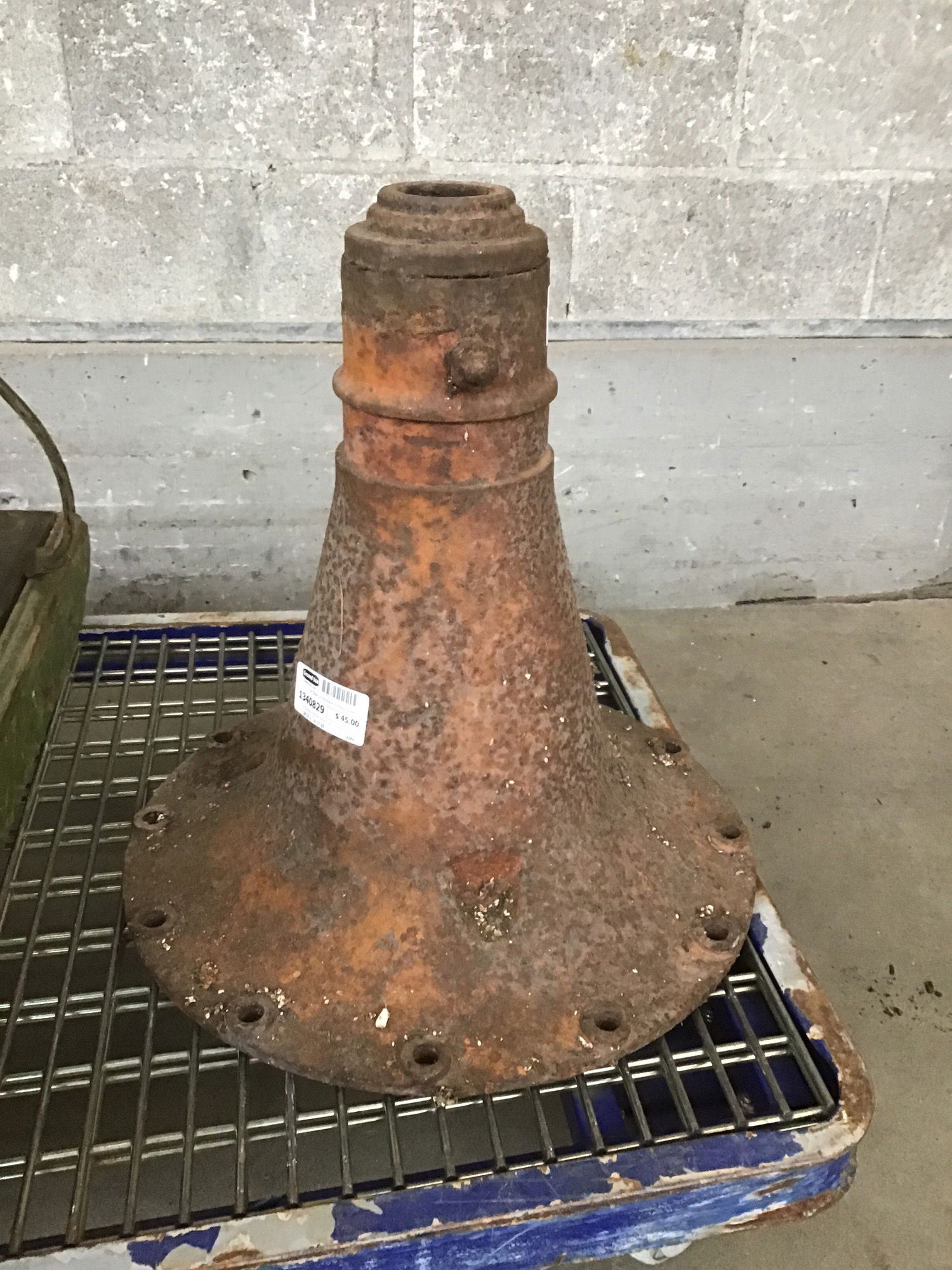 I'm not sure if this bell shaped cast iron pedestal once held a tool a wheel on an axel, but it looks like something that could be repurposed into a table or tool base.