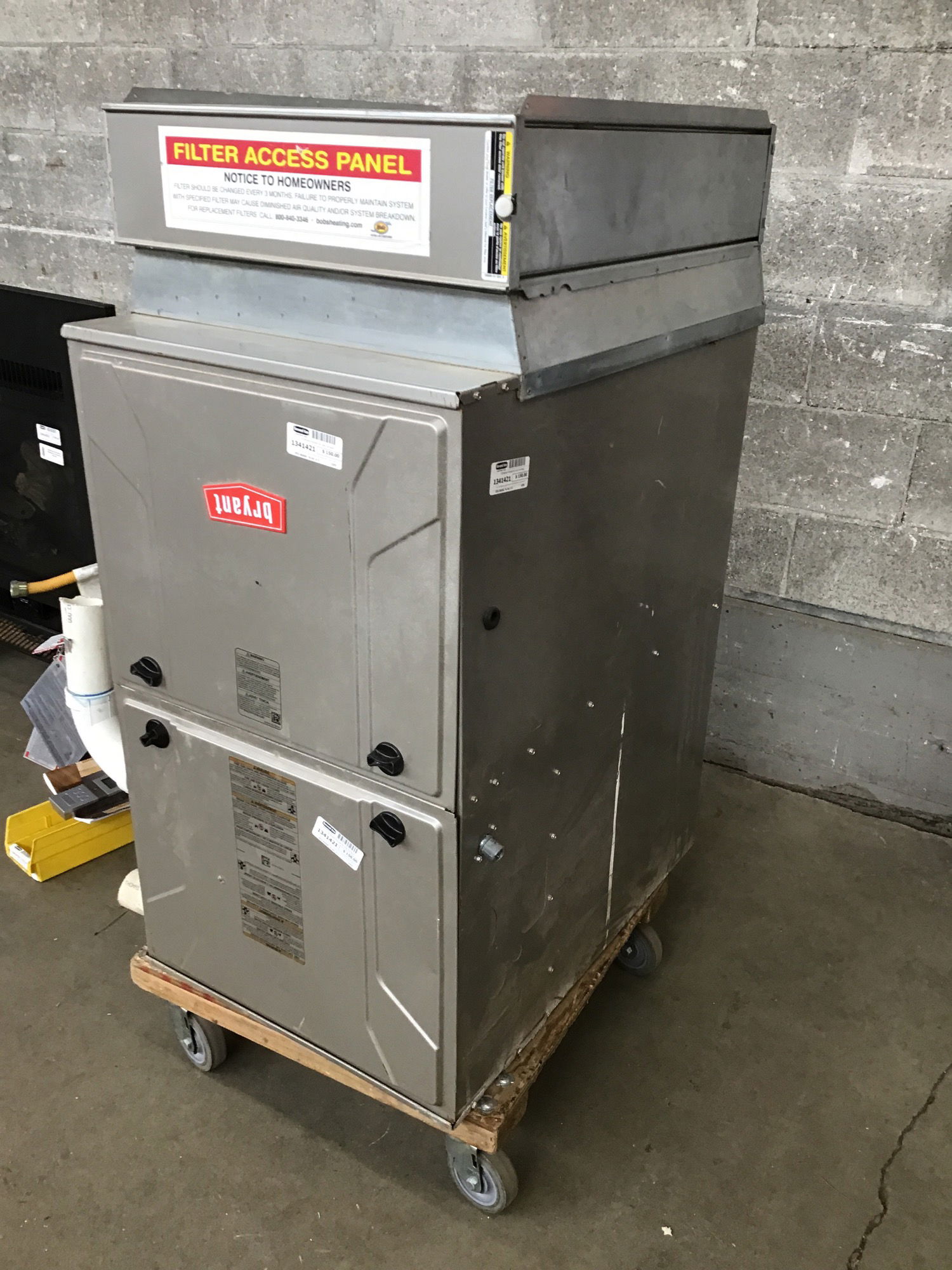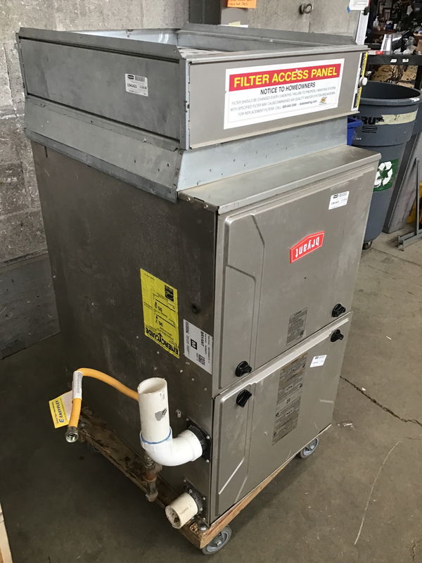 Ca. 2019 Bryant gas furnace that looks like it could use a clean up on the front covers. Price reflects out of season and clean up needed.