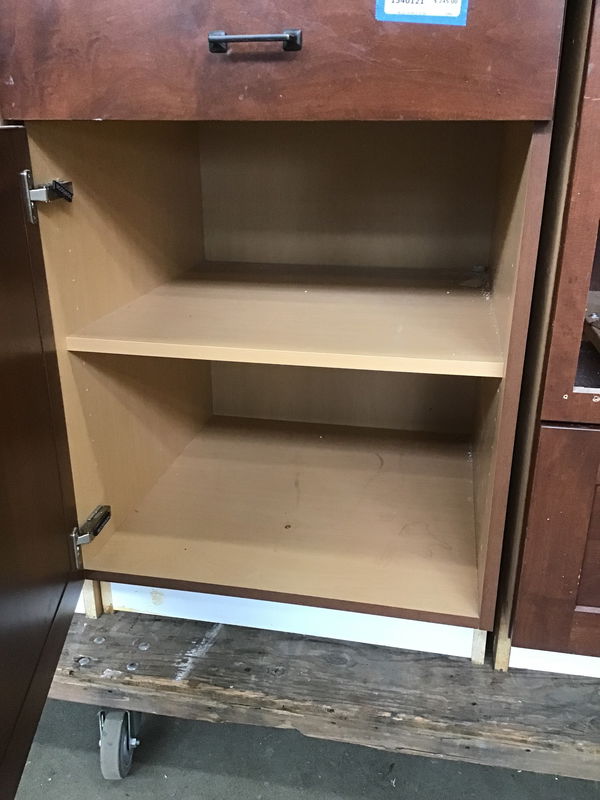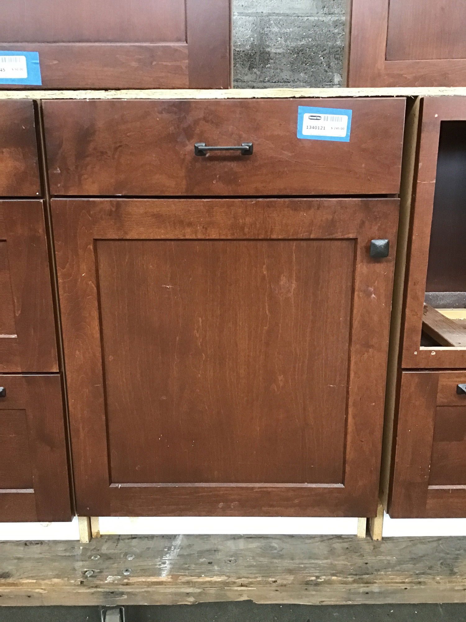 An attractive Shaker-style maple faced base cabinet with top drawer and antiqued brass Craftsman style pulls. The drawer is full extension with undermount hardware!