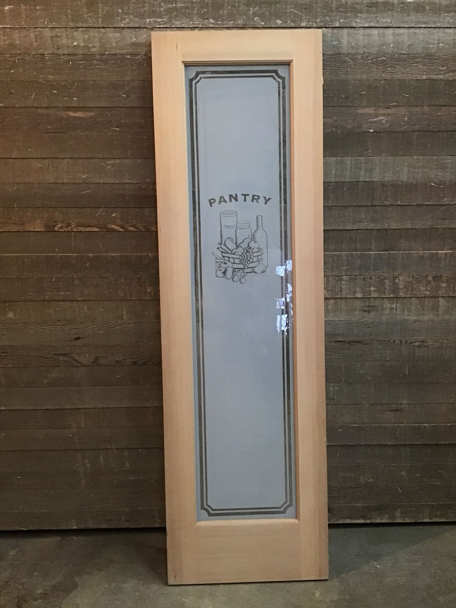 CVG hem/fir pantry door with a raw finish and never installed before. May have some small cosmetic imperfections like scratches and smudges.
