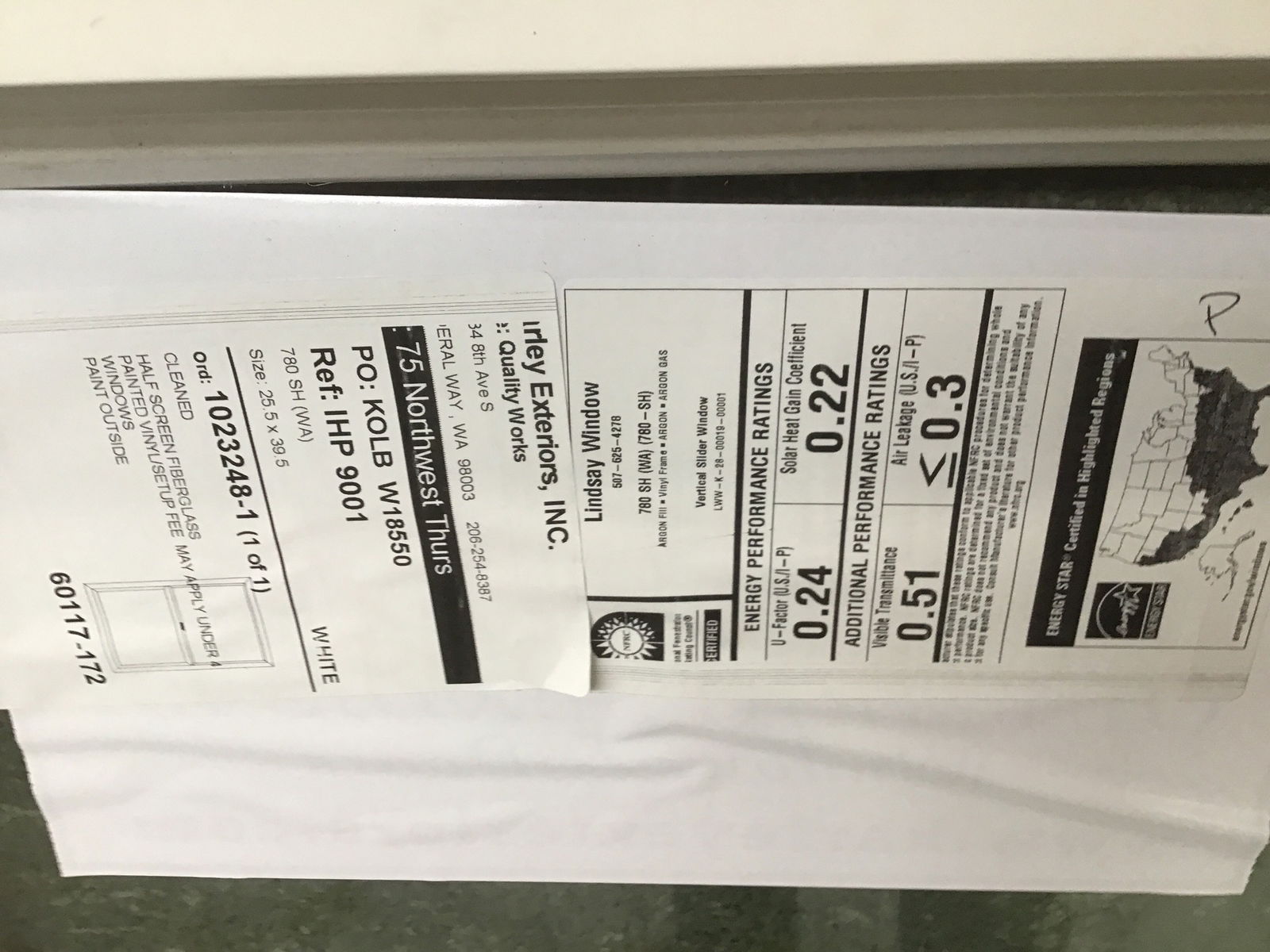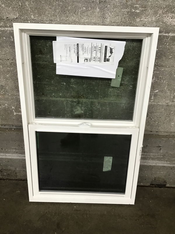 Brown exterior, white interior vinyl single hung window that's never been installed. Has energy tag attached.