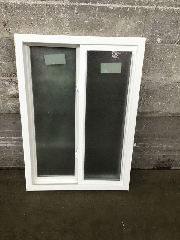 Ca. 2025 White vinyl sliding window that's never been installed--contractor misorder. This one has obscure glass for a bathroom.