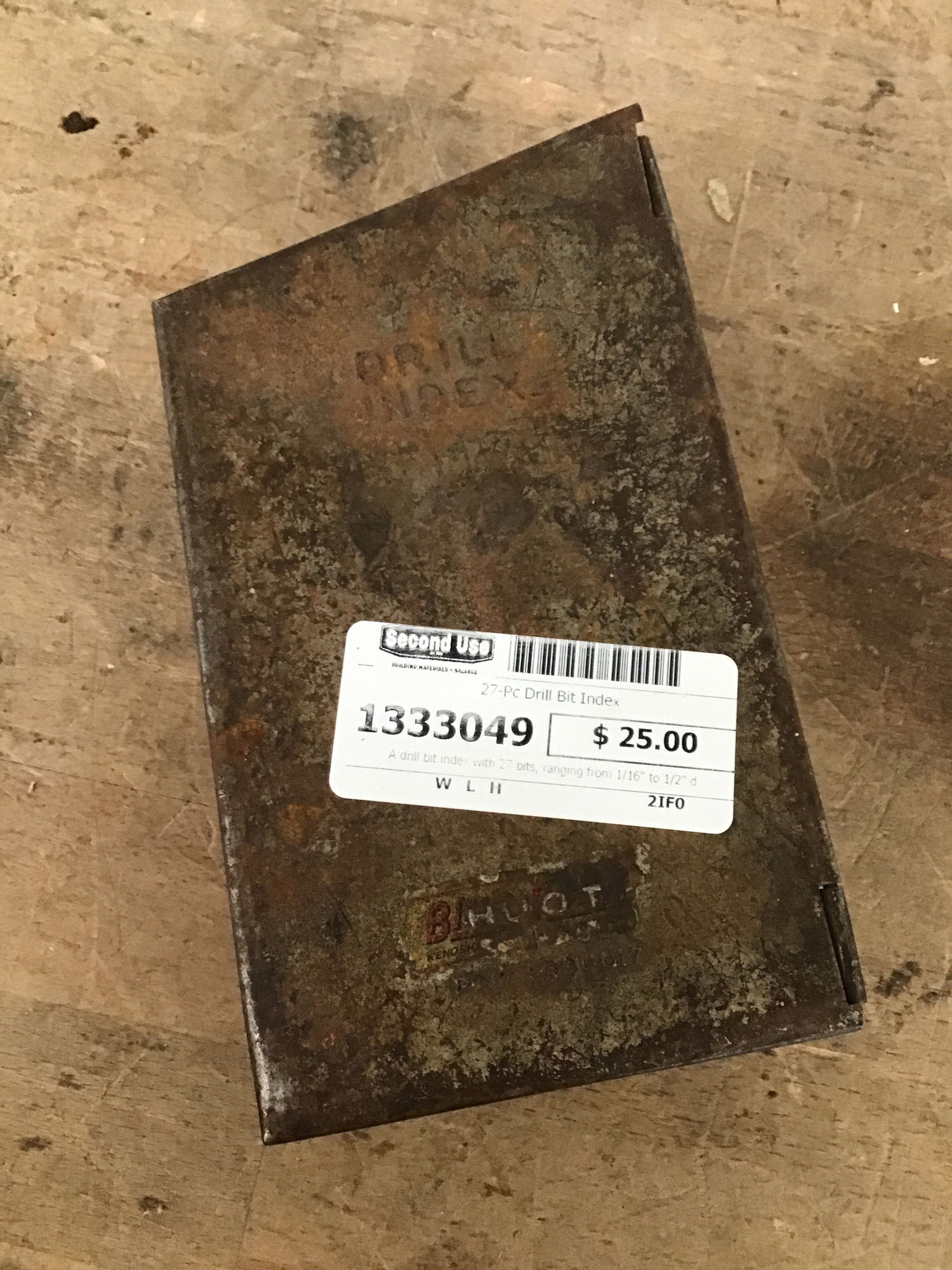 A drill bit index with 27 bits, ranging from 1/16" to 1/2" diameters.