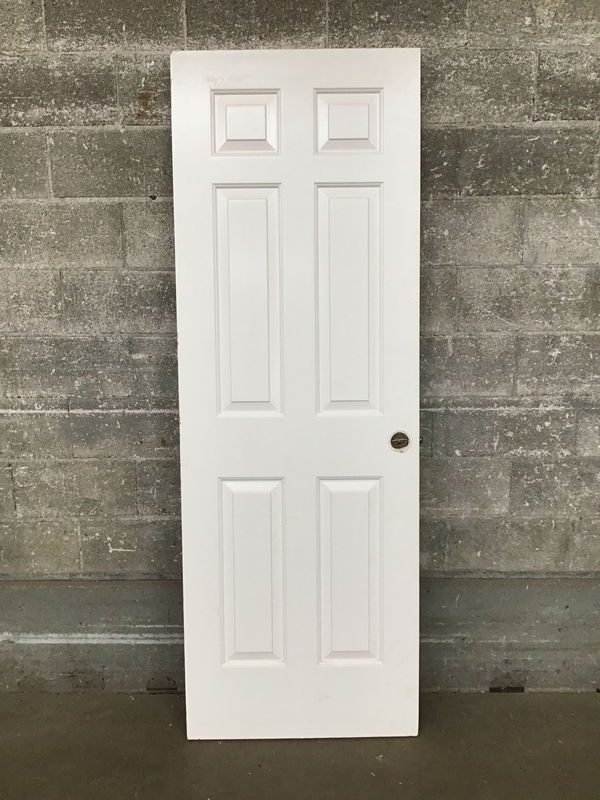28" Faux-Panelled Solid Core Door that is a little rough around the edges but still salvageable. Has 6 raised panels.