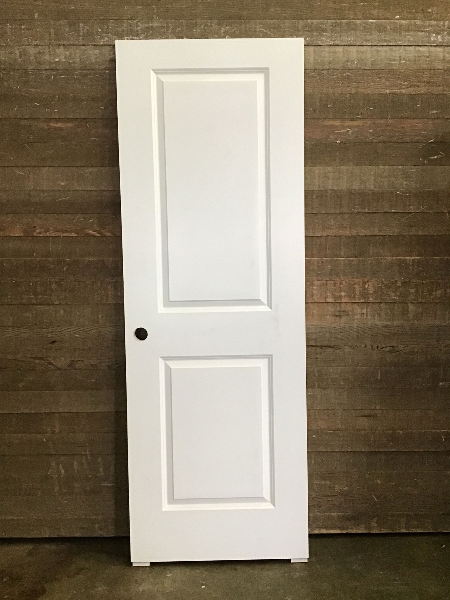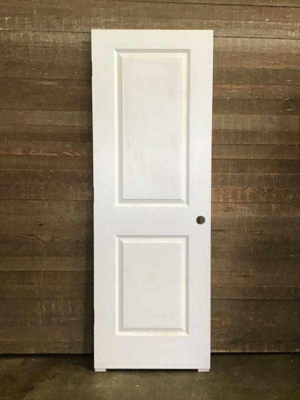 Never installed, 2 raised panel hollow core door. Has right hand swing hinge cuts and bore hole. May have minor cosmetic damage otherwise in good condition.