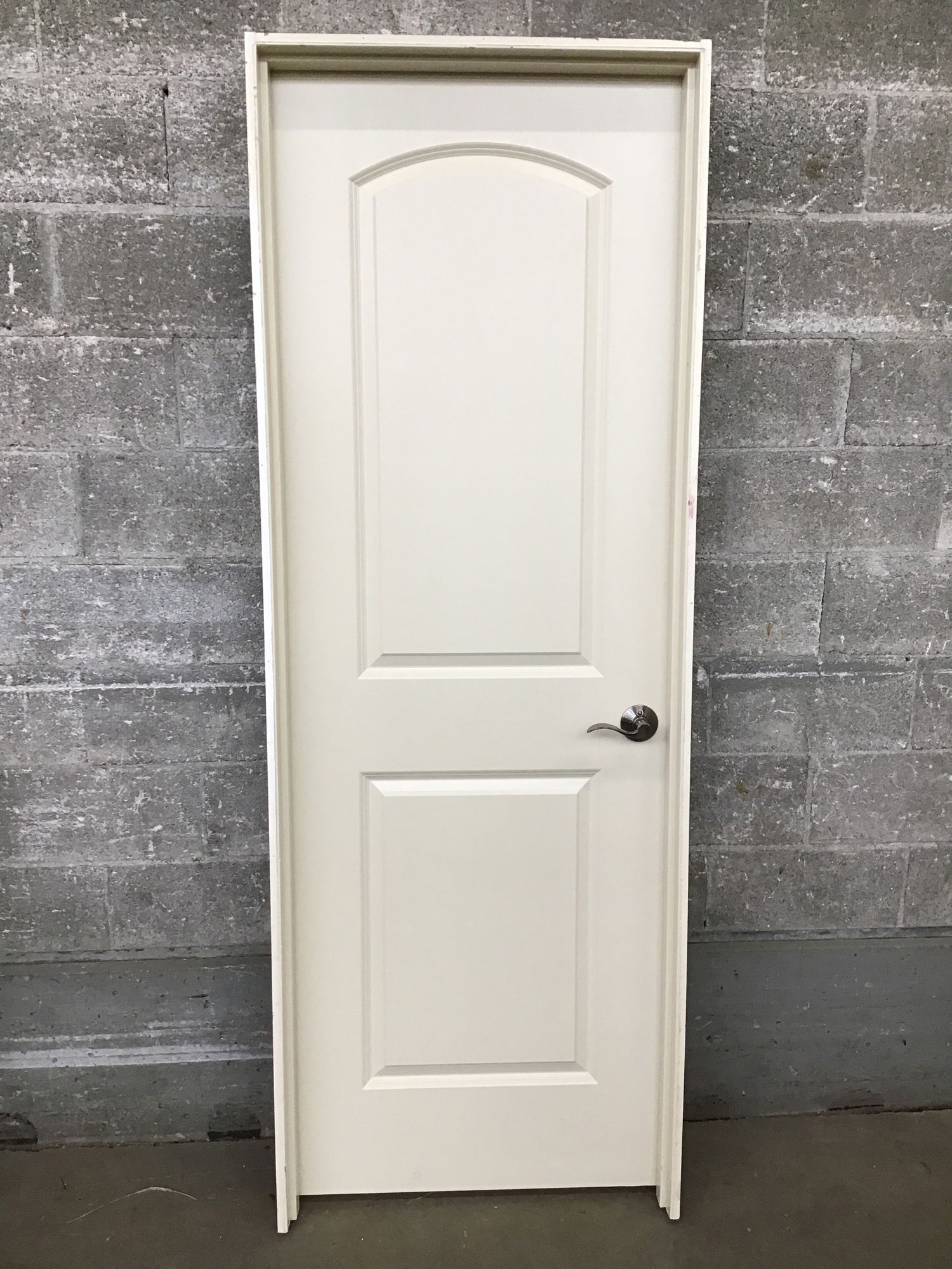 28" Two Panel Solid Core Door with two faux panels, top one is arched.
