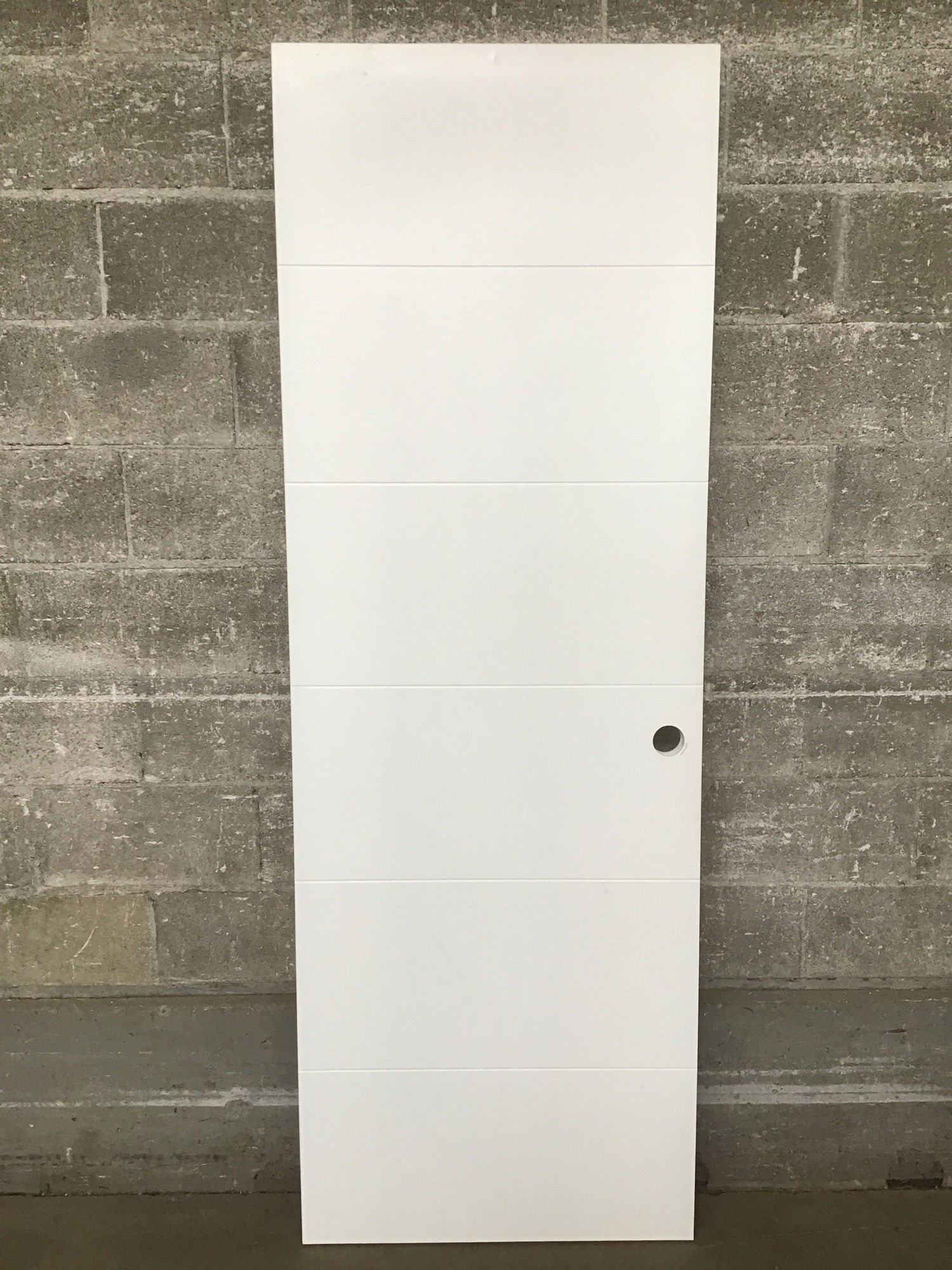 Modern hollow core door with a horizontal groove design and crisp white finish.