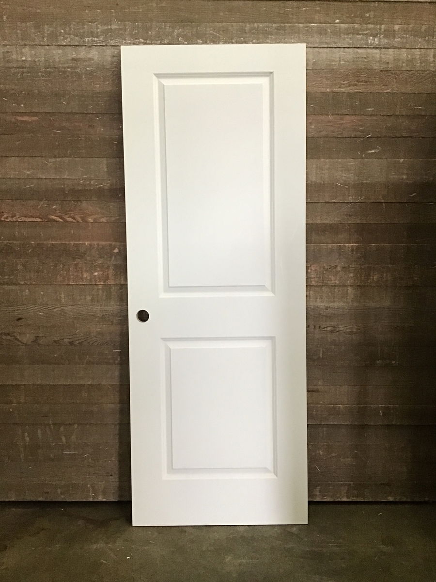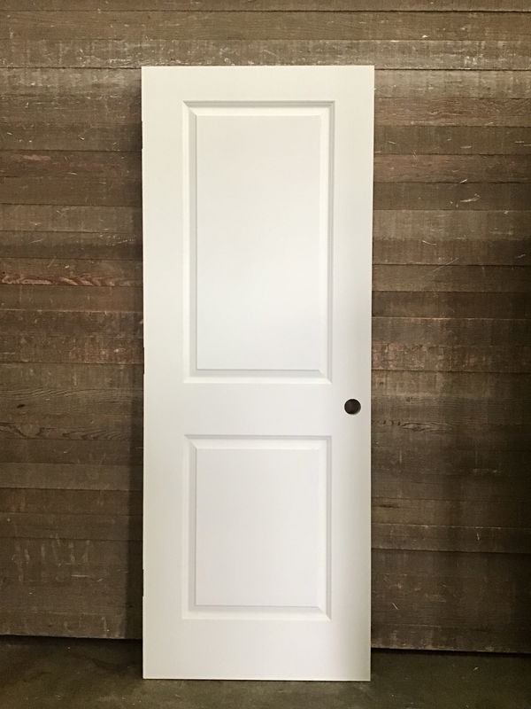 Never installed, 2 raised panel hollow core door. Has right hand swing hinge cuts and bore hole. May have minor cosmetic damage otherwise in good condition.
