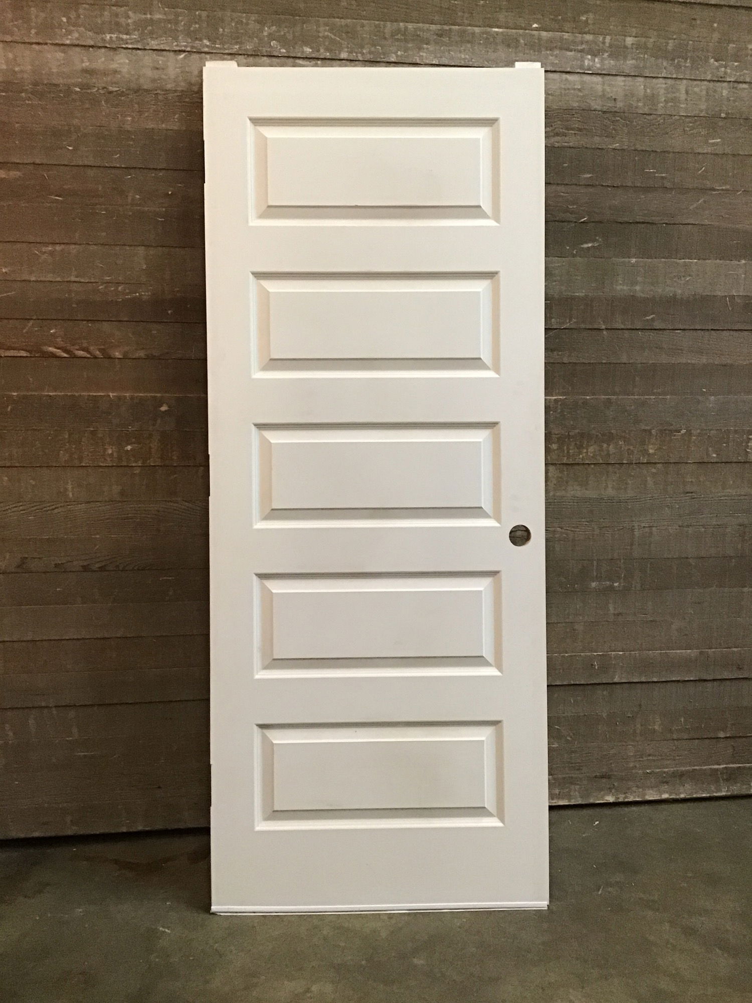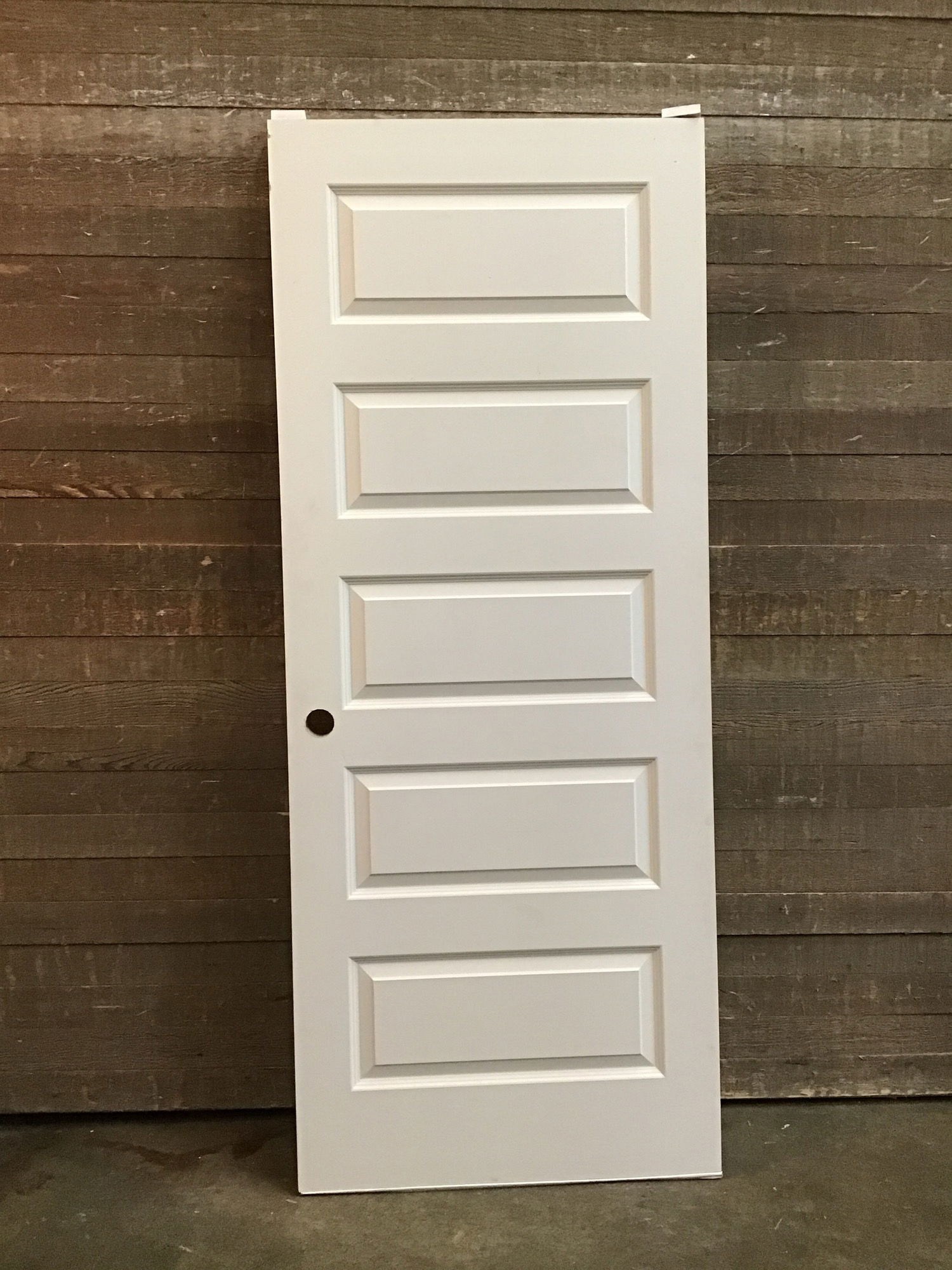32" Faux-Panelled Solid Core Door. 5 Faux raised panels and exterior thickness. Would be a great garage entry door. Door has not been installed but may have light cosmetic blemishes.