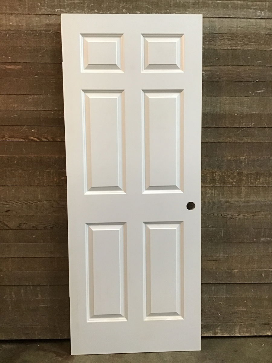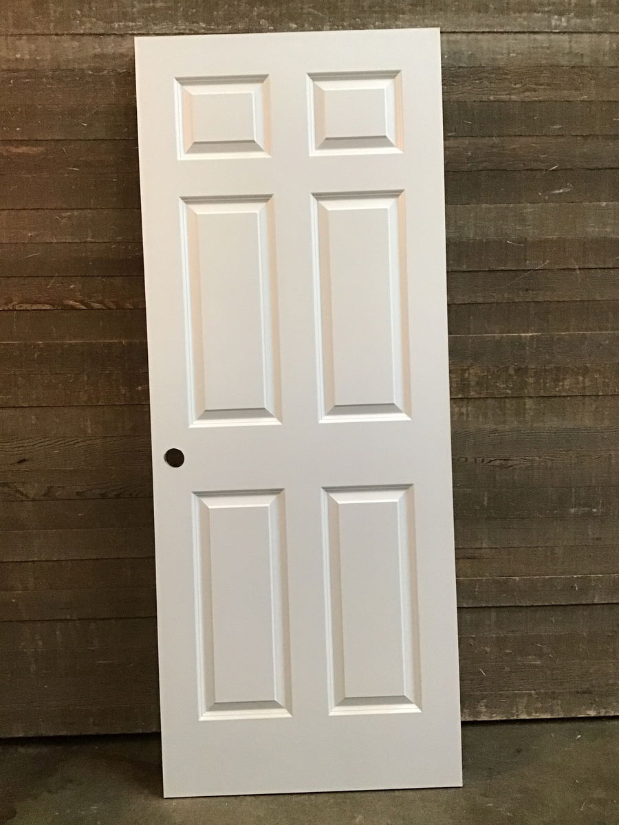 32" Hollow Core 6 Faux Panel Door. This door has never been installed but might have slight cosmetic blemishes. Cut for right hand swing.