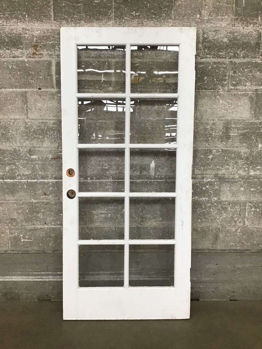 36" 10-Lite Exterior French Door that is in reusable condition but will need some cleaning and maybe a new paint job.